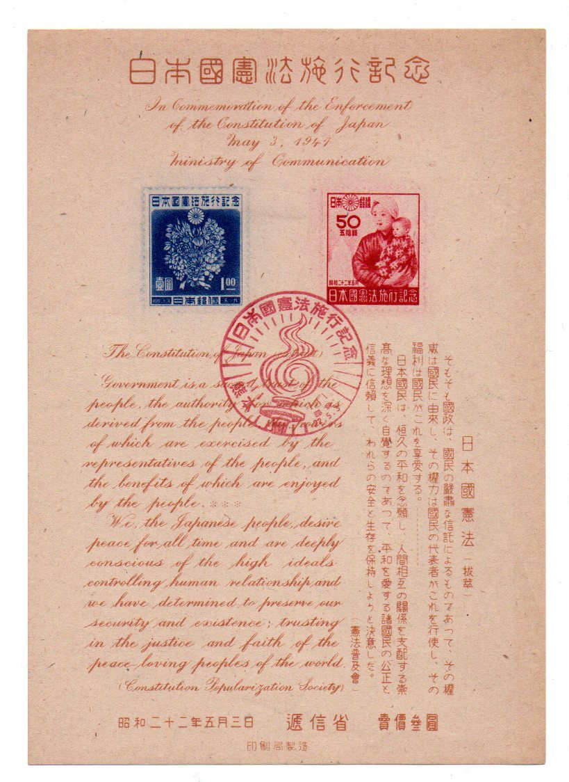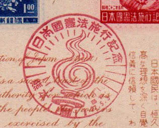 ◆小型シート 使用済2◆日本国憲法施行 記念印初日 熊本