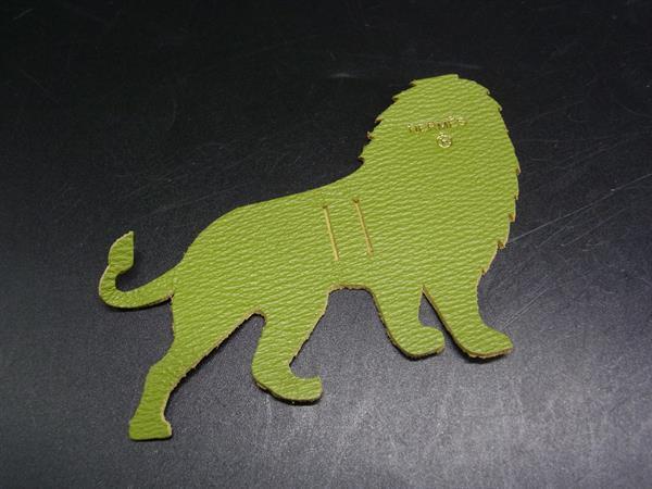 ■美品■ HERMES エルメス レザー ライオン オーナメント ライトグリーン系 DJ6795