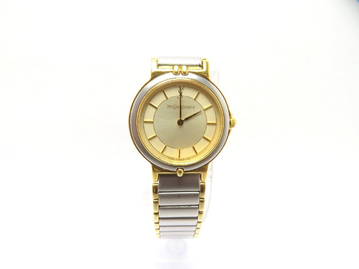1円開始◆稼働◆ YSL 2200-228481 ゴールド クオーツ レディース 腕時計 AD101