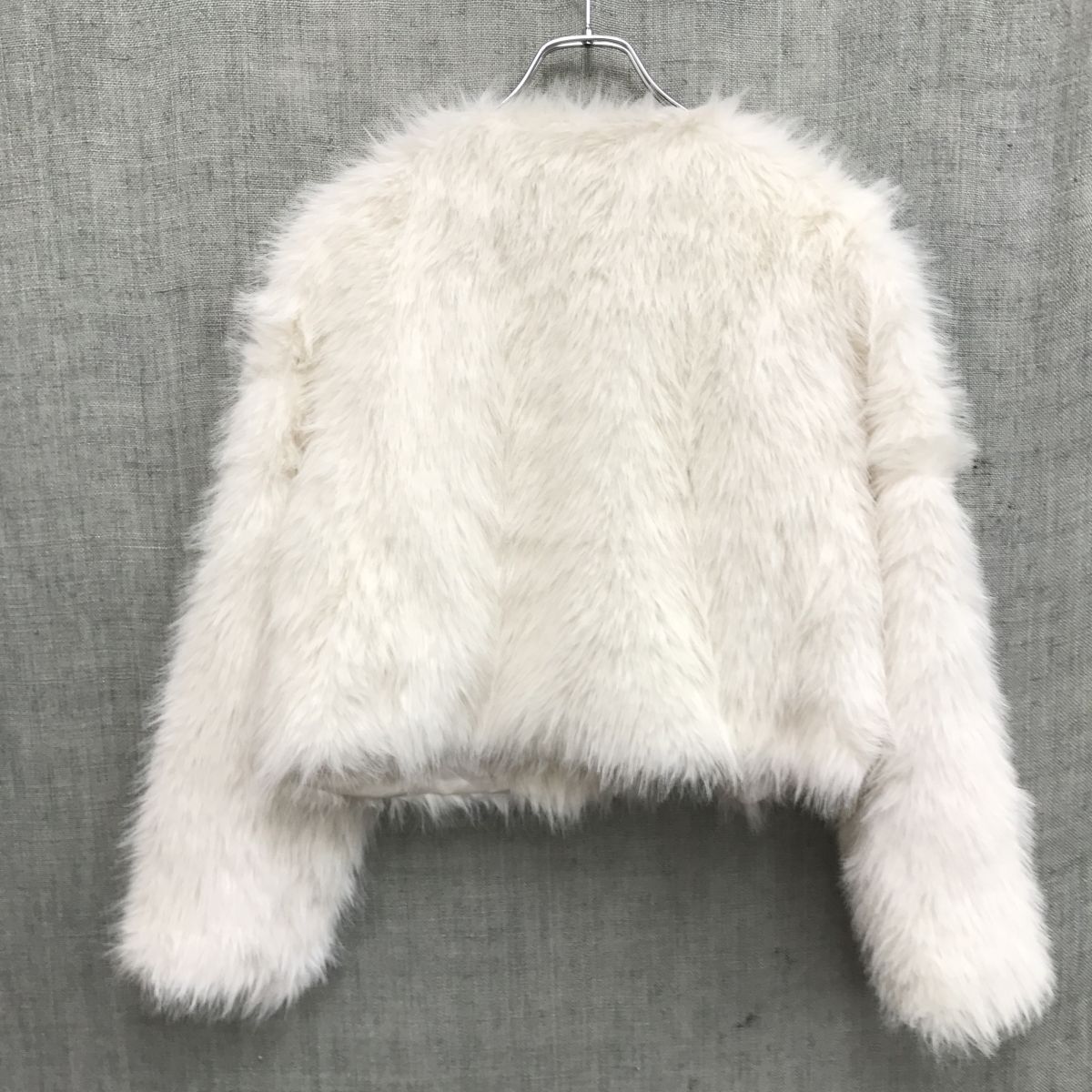 2N1668-G◆美品◆ ROYAL PARTY ロイヤルパーティ エコファーショートジャケット ノーカラー 無地 ◆ sizeF オフホワイト ポリエステル