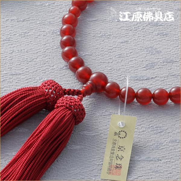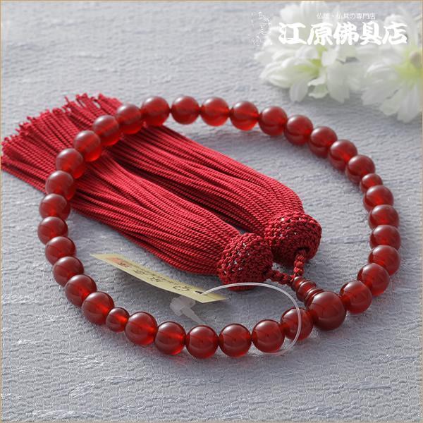 [ゆうパケットOK]瑪瑙8ミリ共仕立 正絹頭付(1級品)≪紙箱入り≫エンジ色房【京念珠/数珠/女性】