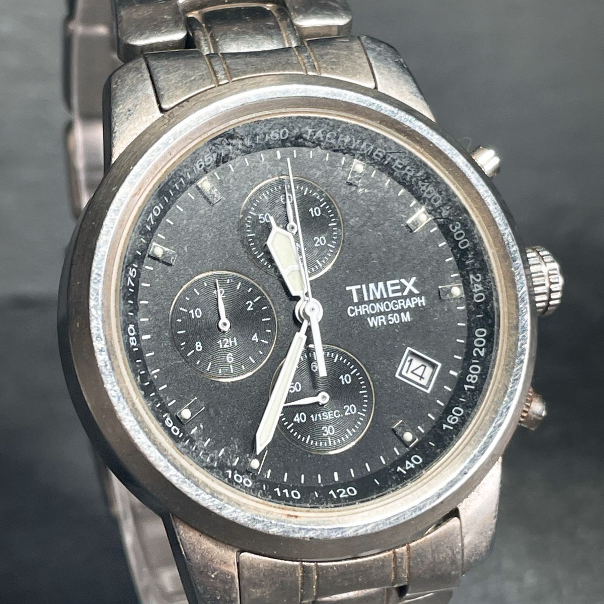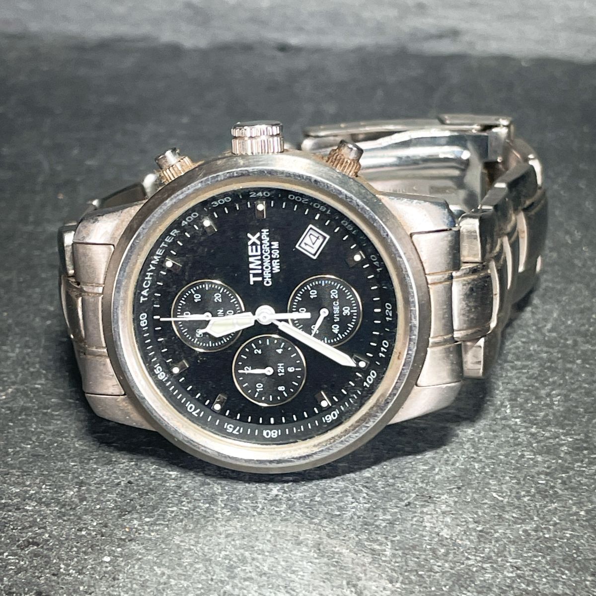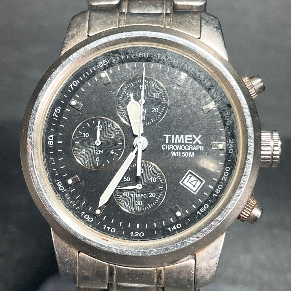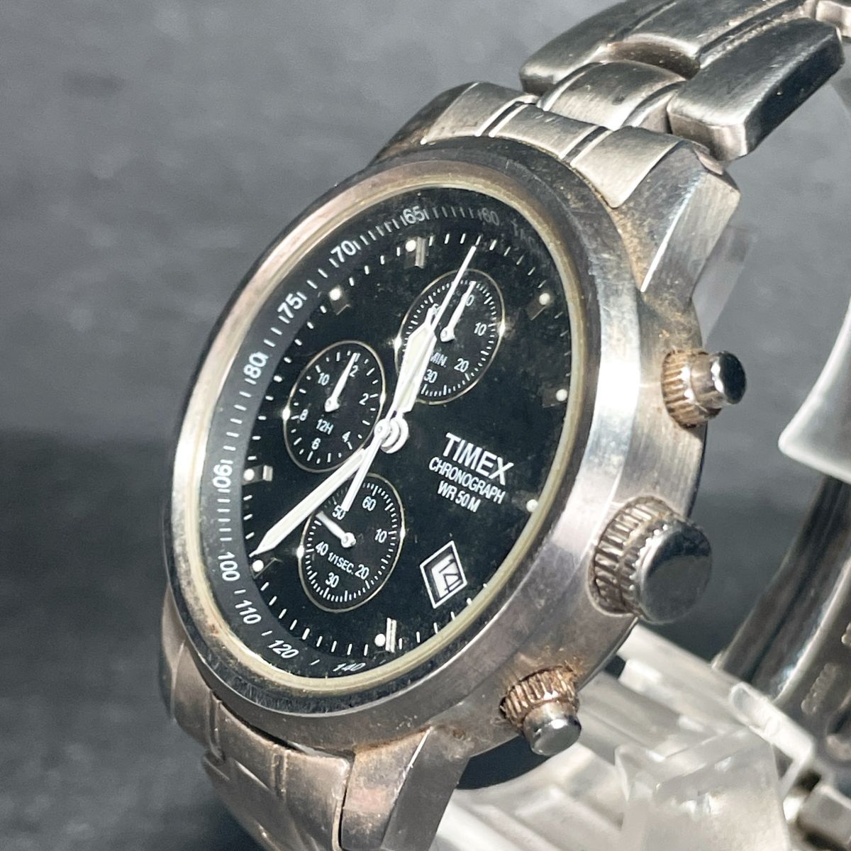 TIMEX タイメックス 腕時計 アナログ クオーツ クロノグラフ カレンダー ブラック文字盤 メタルバンド 新品電池交換済み 動作確認済み
