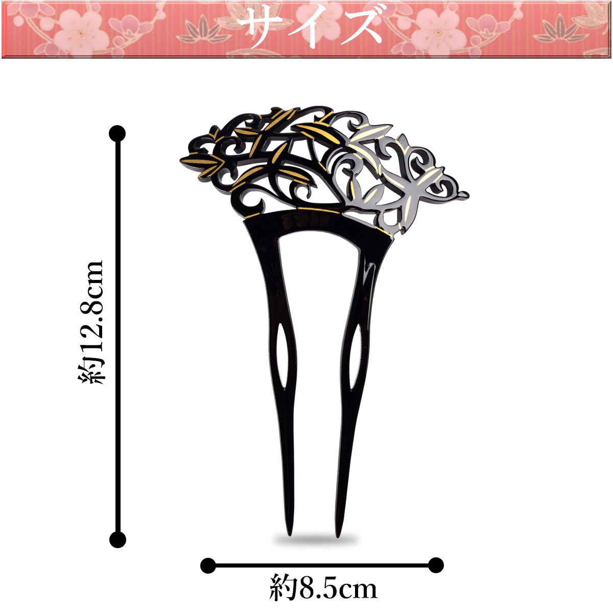 ● 古典柄の上品なデザインで、どんな色の着物でもパッと映えます。また、一本かんざしと合わせてお使いいただくと印象が違って見えますので、どうぞお試しください。