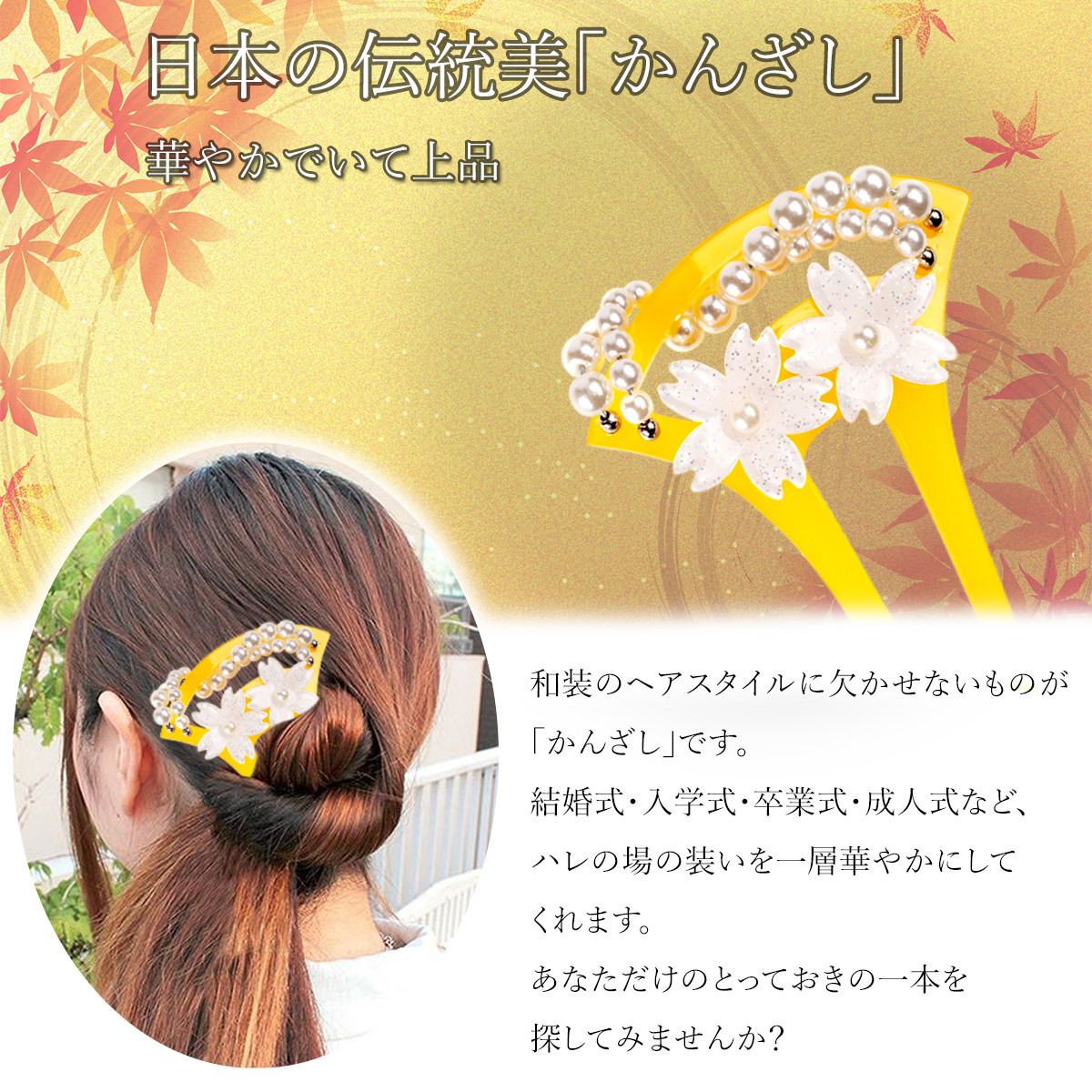 ● まとめ髪を一層華やかにしてくれます。パールやラメが入っていることで和装だけでなく、洋装にも合います。