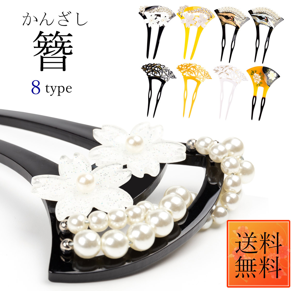 かんざし 簪 バチ型 髪飾り 桜 パール 鶴 花 和装 まとめ髪 着物 振袖 留袖 訪問着 浴衣 結婚式 入学式 卒業式 成人式 桜 黒 A 送料無料