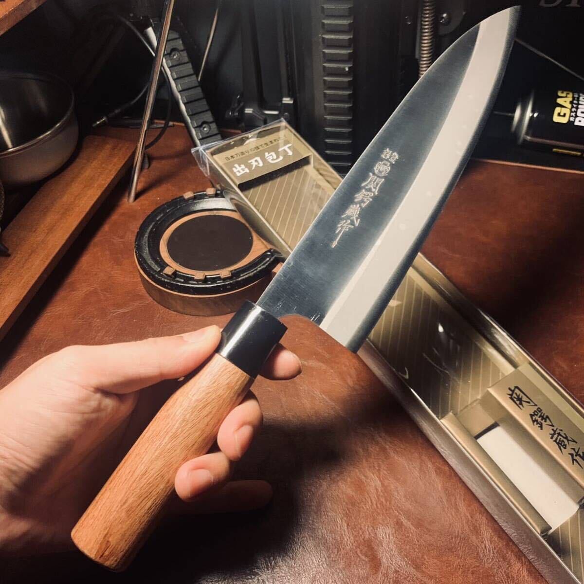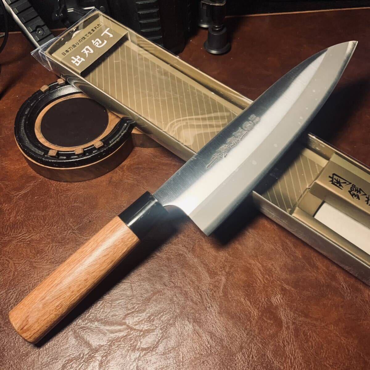 関鍔蔵作 高品質 切付出刃包丁 片刃本格刃物 ステンレス鋼 料理包丁 刺身包丁 和包丁 刃長21㎝ 全長35cm 柳刀包丁 242g