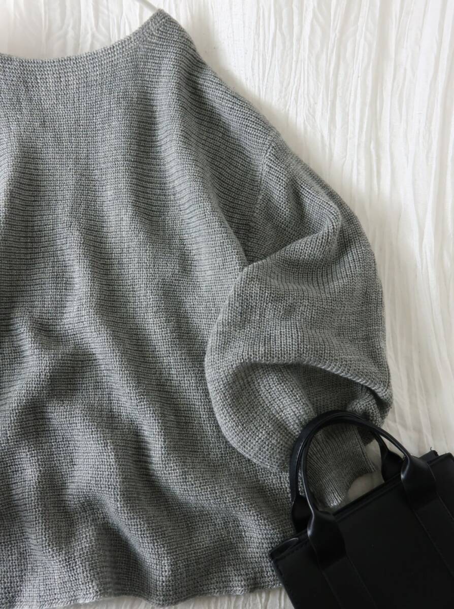 リブを横使いにした編み目がさりげないポイントのニットプルオーバーです。