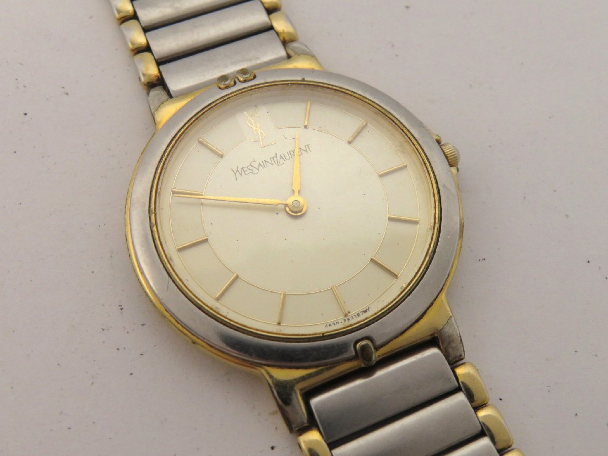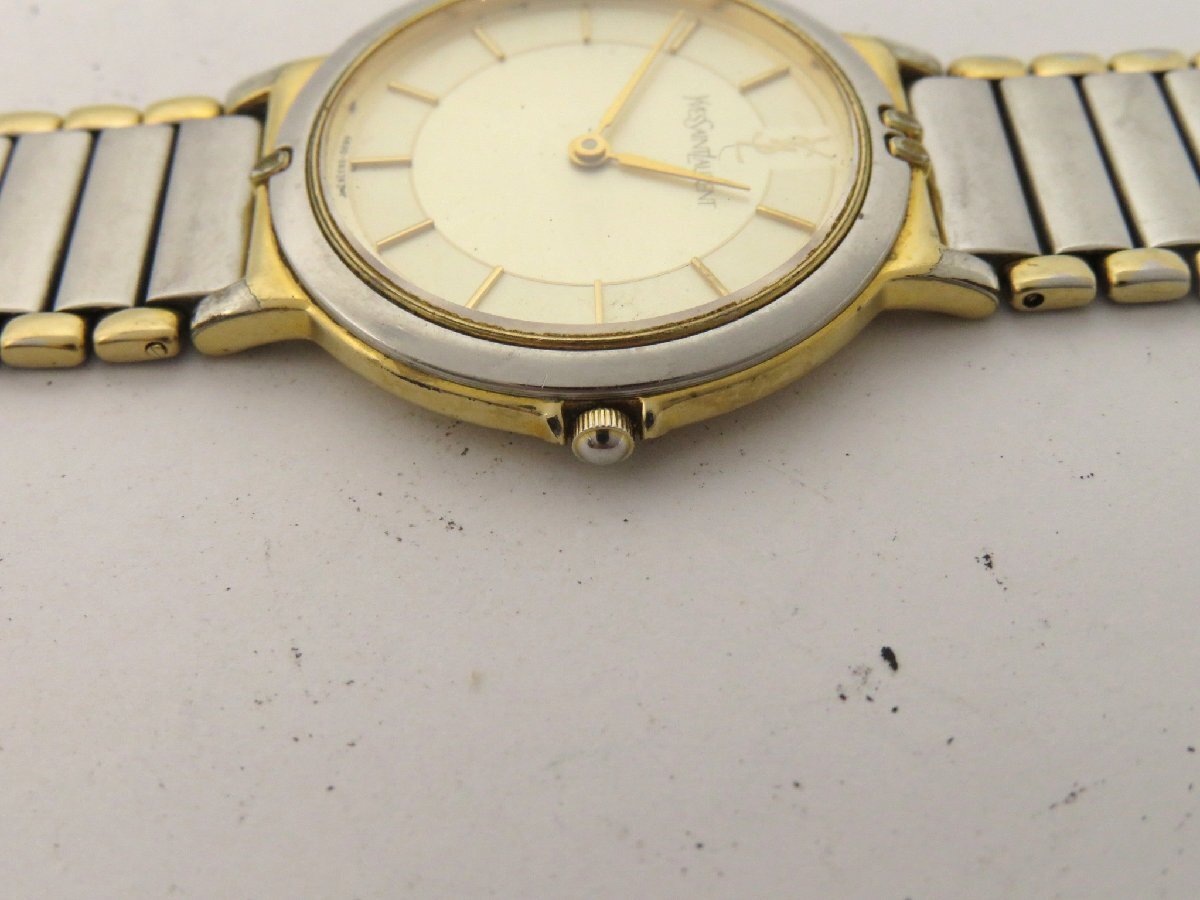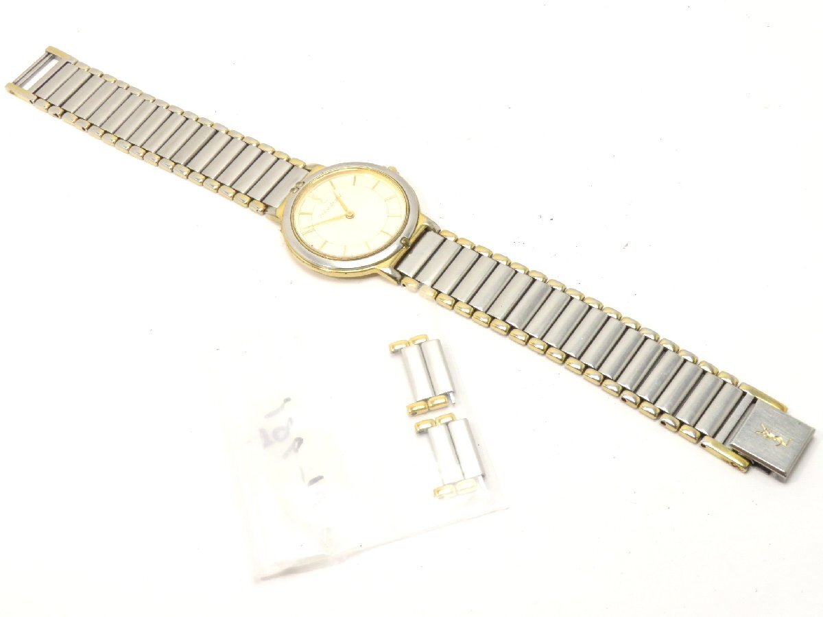 1円開始◆稼働◆ イブサンローラン 4620-E62267 シャンパン クオーツ レディース 腕時計 コマ AC63202