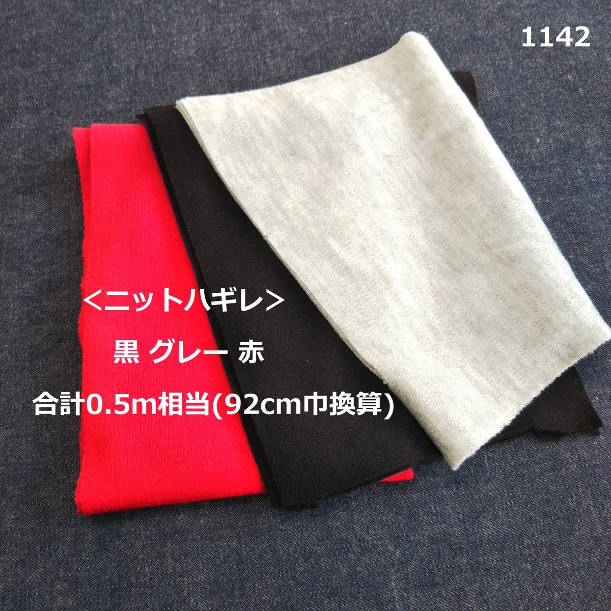 1142<ニットハギレ>黒グレー赤合計0.5m相当(92cm巾換算)♪小物のハンドメイドに♪