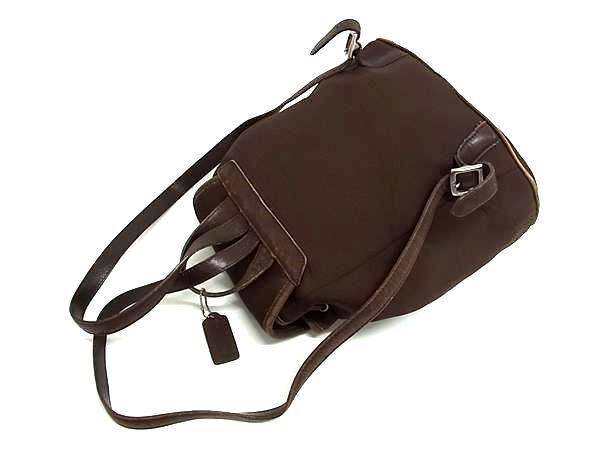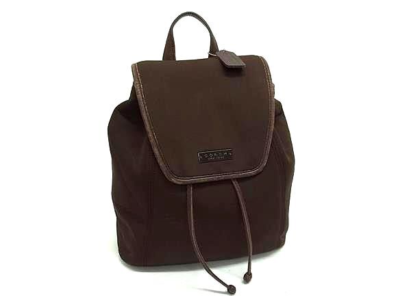 1円 COACH コーチ 6205ナイロン×レザー 巾着型 リュック バックパック レディース メンズ ブラウン系 BN5954