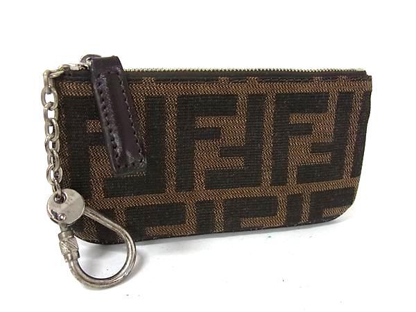 1円 FENDI フェンディ ズッカ柄 キャンバス×レザー コインケース コインパース 小銭入れ レディース メンズ ブラウン系 FT3253