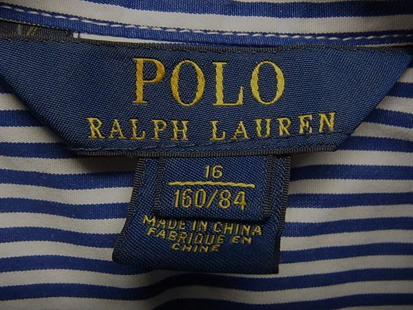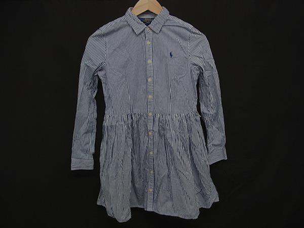 ■極美品■ POLO RALPH LAUREN ポロラルフローレン コットン100% 長袖 シャツワンピース サイズ 16 洋服 キッズ ブルー系DH9014