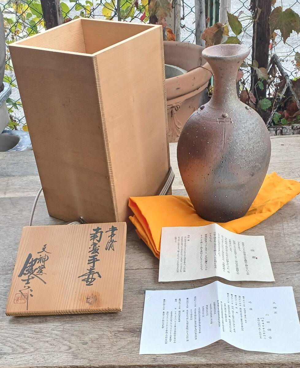 !秀品!!常滑焼「天神窯・山田健吉 作」【南蛮手壺】1個・高さ230×口径60×高台70ミリ(詳細不明)