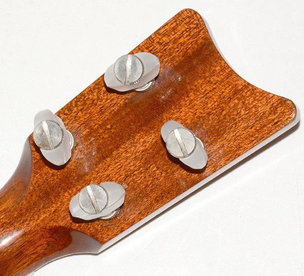 ・ボディ正面にスレ、キズ、多少の打痕、塗装クラックが見られます。 ・ボディ側面に多少のスレ・キズ、打痕が見られます。 ・ボディ背面にスレ、キズ、打痕が見られます。 ・ボディ底面に多少のスレ・塗装はがれ、キズ、打痕が見られます。 ・ネックに多少のスレ、キズ、打痕が見られます。 ・ヘッドに多少のスレ、キズ、打痕が見られます。 ・ペグの樹脂部分に多少のスレ、小キズが見られます。 ・ペグ等金属部分に多少のスレ、キズ、一部にメッキはがれが見られます。 ・ケースにスレ、キズ、汚れ等が見られます。 全体的に多少のスレ、キズ、打痕、塗装クラック等が見られますが、 目立ったキズ、ダメージは見られない状態です。 ネックはほぼストレートの状態です。 重量:約0.5kg、ナット幅:約35mm、スケール: 約381mm |