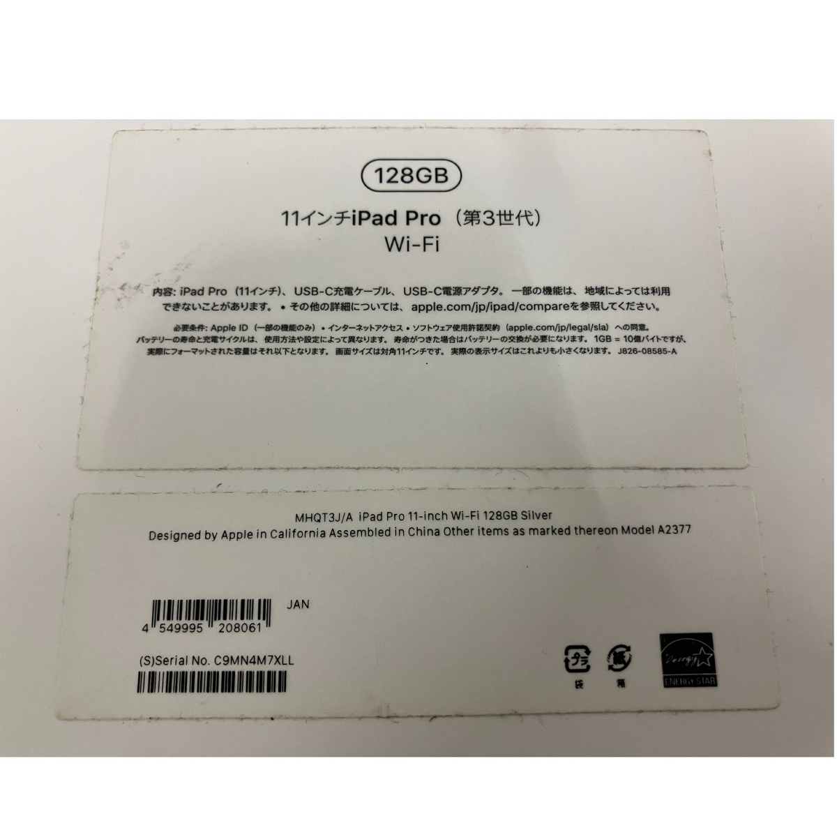 | Apple iPad Pro 11インチ 第3世代 MHQT3J/A Wi-Fiモデル 128GB タブレット 中古 B10612186 |