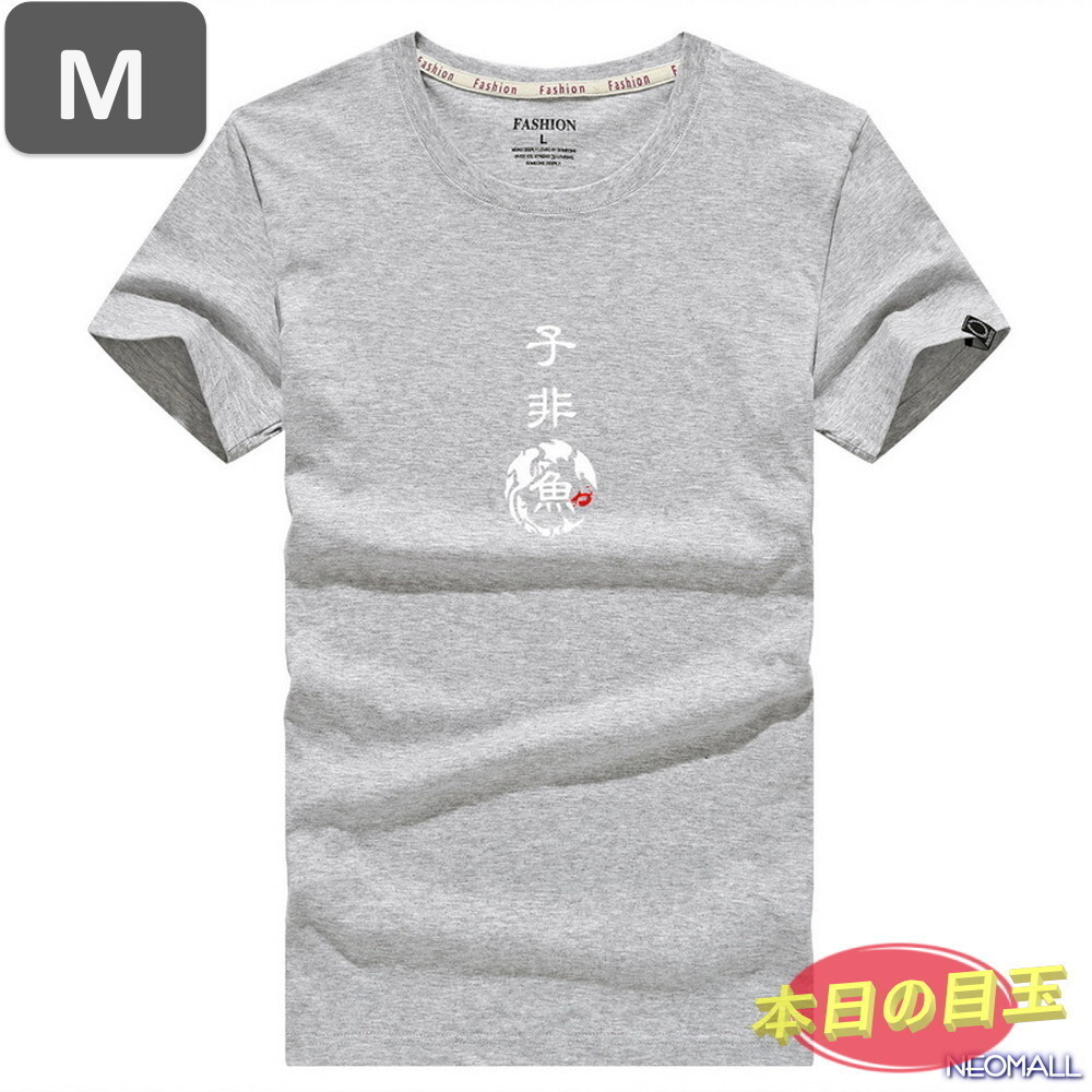 本日のお買得 ☆ 丸首 半袖 Tシャツ【450】 グレー Mサイズ トップス シャツ シンプル イラスト デザイン 春夏