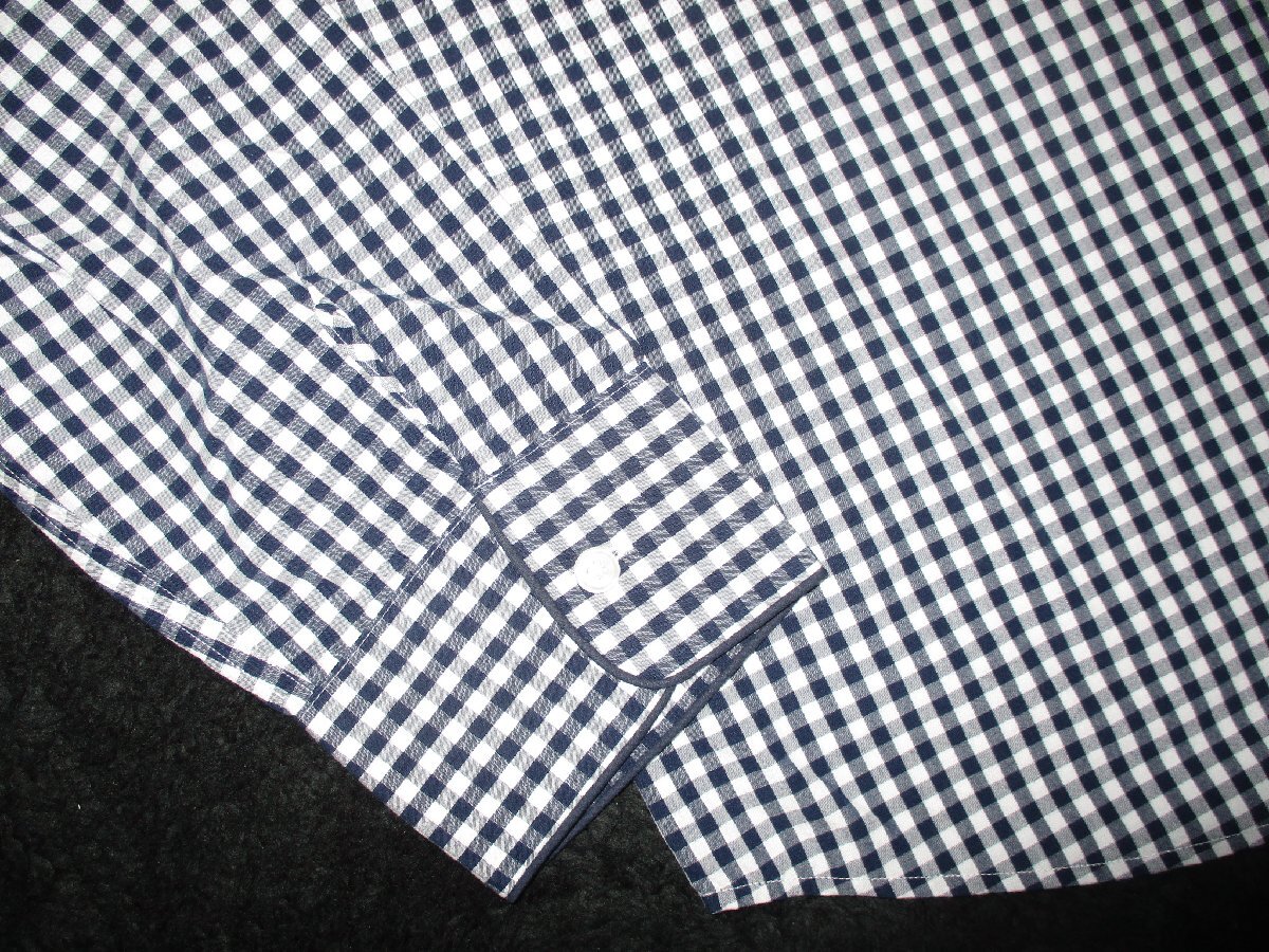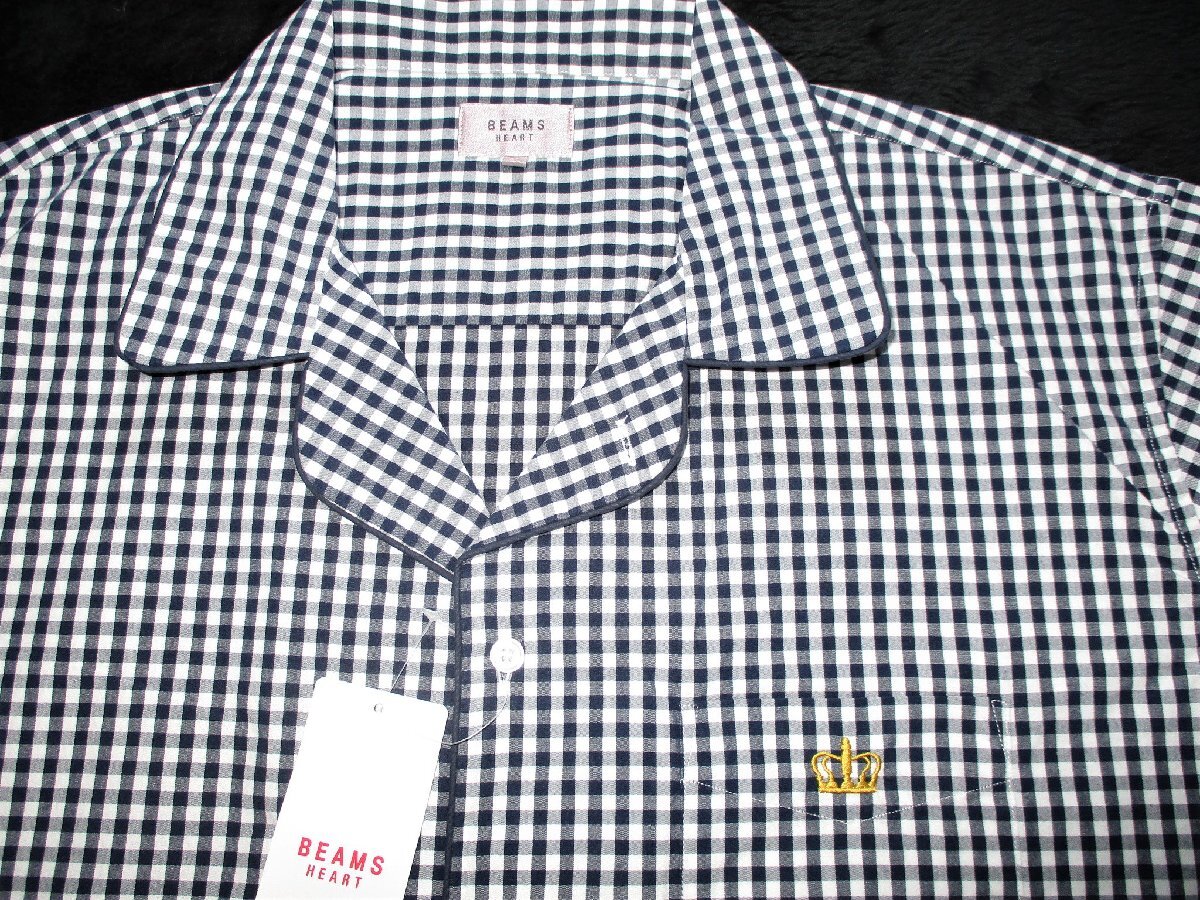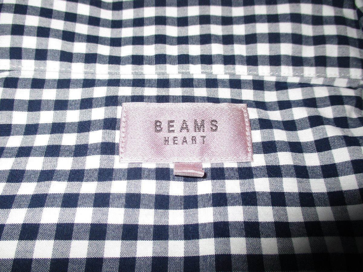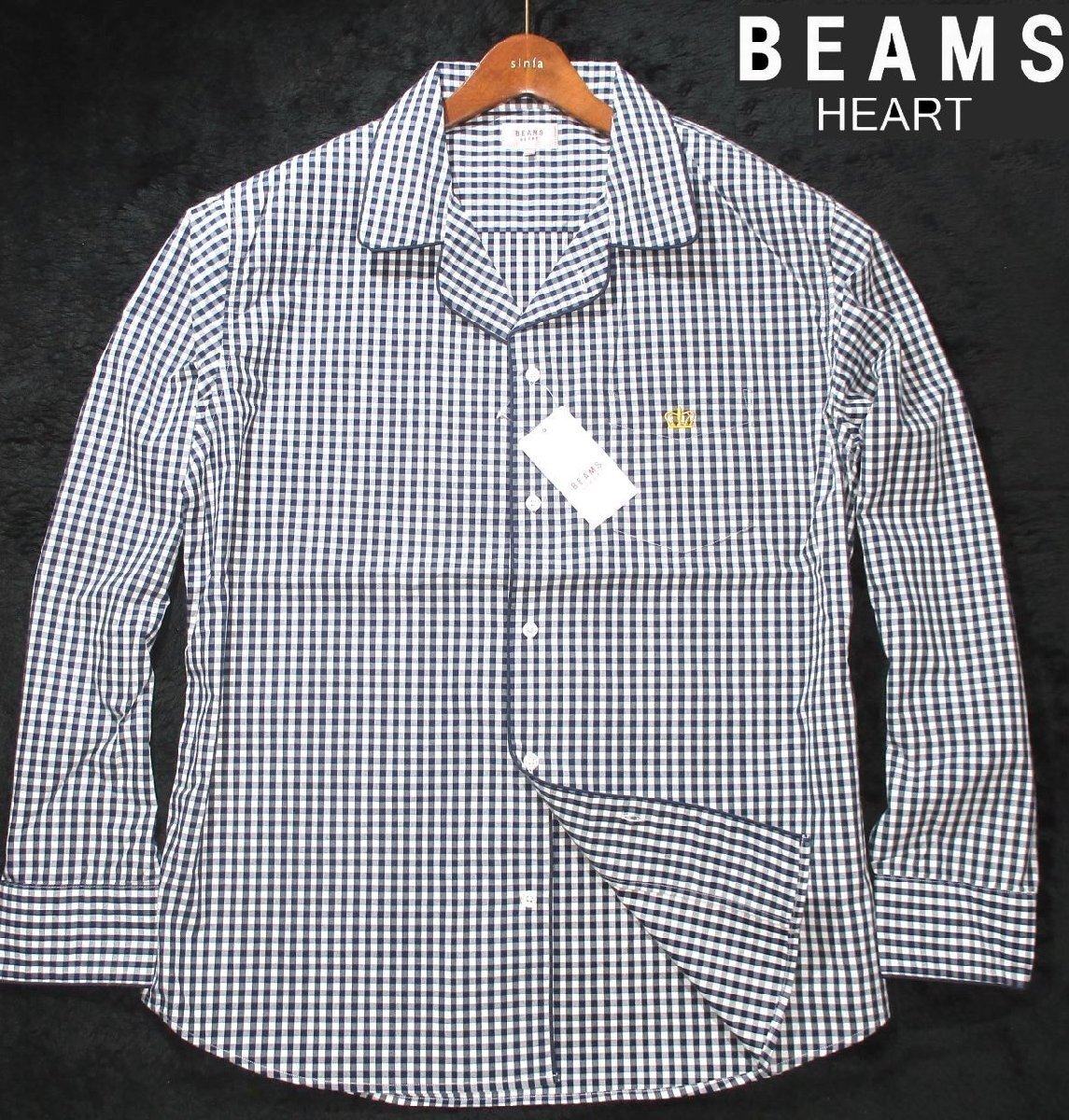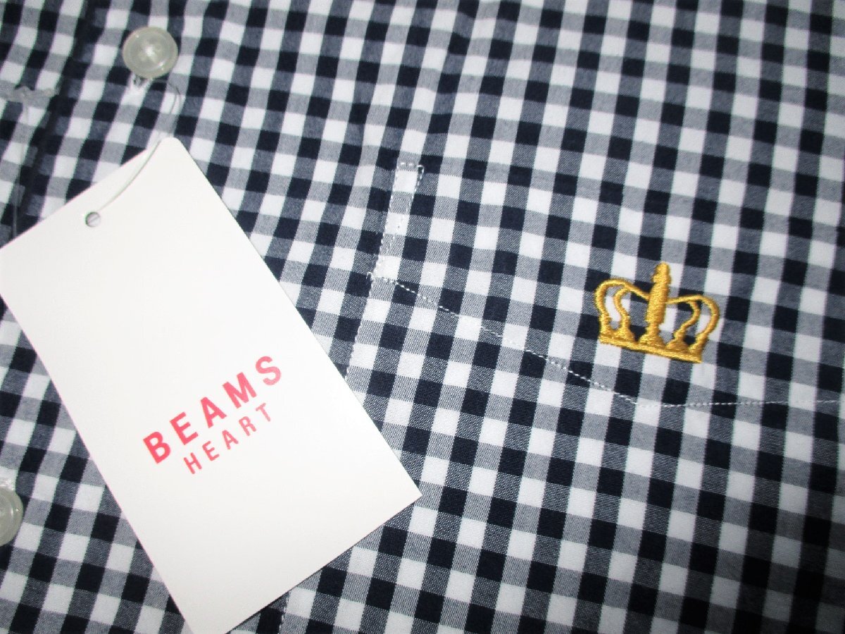 新品 M ▼ ビームス BEAMS HEART ▼ 高密度 長袖シャツ ギンガム チェック ネイビーブルー 紺青 メンズ 王冠 クラウン ポケット