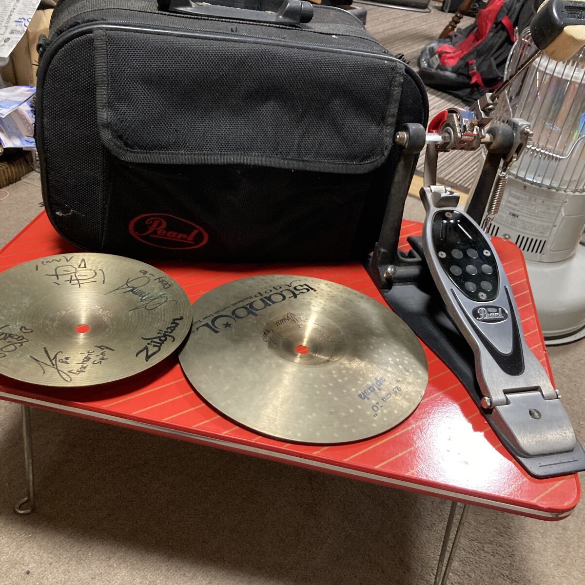 使えるかは分かりません、シンバルみたいな物は大きい方割れあり、またサインあり、当方音楽はからっきし分からないので、欲しい方是非活用してみて下さい。