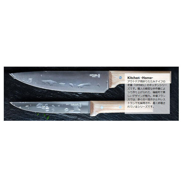 | 内 容 | ■オピネル シェフナイフ(41517) ■サイズ:刃/約200mm ■重量:約170g ■材質:刃/ステンレススチール、柄/ブナ材 ◆参考価格 6820円相当 1890年フランスで誕生した、 世界で最もシンプルなナイフメーカー「オピネル」。 シンプルかつ頑丈で、何より機能的なナイフは、 パブロ・ピカソも愛用していた実用的なナイフとして 100年以上ものあいだ、 世界中の人々から愛され続けている フランス文化には欠かせないシンボルです。 世界中で一般的に使われている牛刀ナイフ。 刃先が鋭く大きな野菜、肉、魚のスライスなどに 適している万能包丁です。 お手入れ簡単。切れ味がよくて錆びにくく、 メンテナンスの手間もかからない ステンレススチールの刃なので普段の料理におすすめです。 |