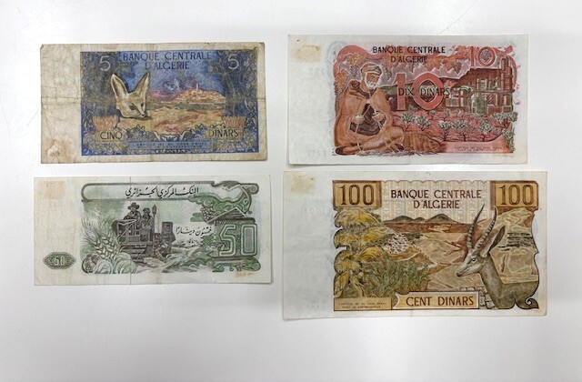 | 古銭 外国紙幣 アルジェリア(5・10・50・100ディナール)まとめて4枚 | ||