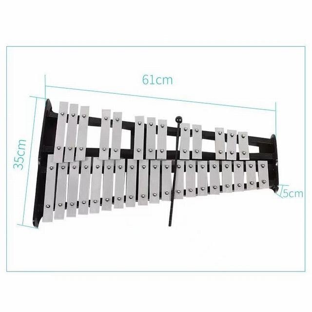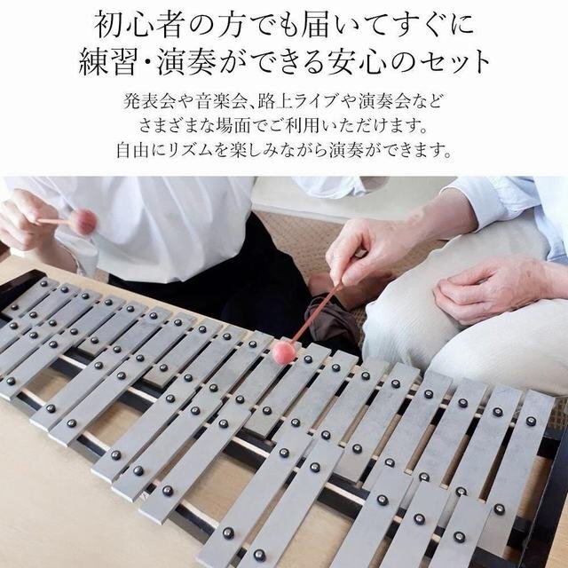 【サイズ】:写真をご参照ください。 【高さ調節範囲】:約70-110cm 【32音】 初心者の方のために特別にデザインされたパーカッション琴です。 32音と2列の音色があり、1列は半音階、もう1列は全音階で、くっきりとした豊かな音色を提供します。 【広く適用可能な打楽器】 32音の打楽器は、熱狂的な音楽学習者に適しているだけでなく、最も簡単に始められるものの1つと見なされています。若い学習者のために、それは彼らの音楽感覚を養い、彼らの協調能力を発達させます。 収納用手提げバッグが付属しているので、持ち運びも便利で、使わない時はバッグに入れコンパクトに収納できます。発表会など初心者の練習用、路上ライブや演奏会にぴったりです。 マレット、スタンドとセットでの販売なので、別途マレットとスタンドを購入する必要がありません。 これから鉄琴を始める方にもおすすめとなっております。 【注意事項】 鉄琴の点検は出荷前にしっかりと実施させていただいておりますが、輸送の関係で、ネジがゆるくなて、音が一部おかしくなる場合がございます。 不良品ではありません、お客様ご自身でネジを少し締め付ければ直ります。ご了承ほどお願い致します。 モニターの環境等により、色の見え方に若干差が生じる場合がございます。 また素材の性質上、裏面の金具の塗装が剥がれやすくなっております。使用上の影響はございませんのでご配慮お願い致します。