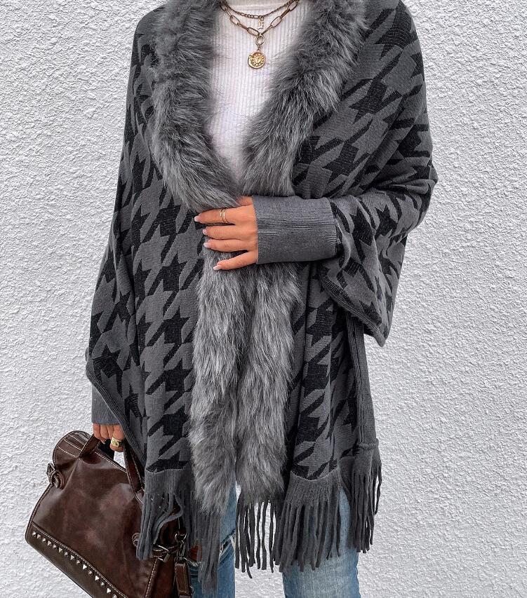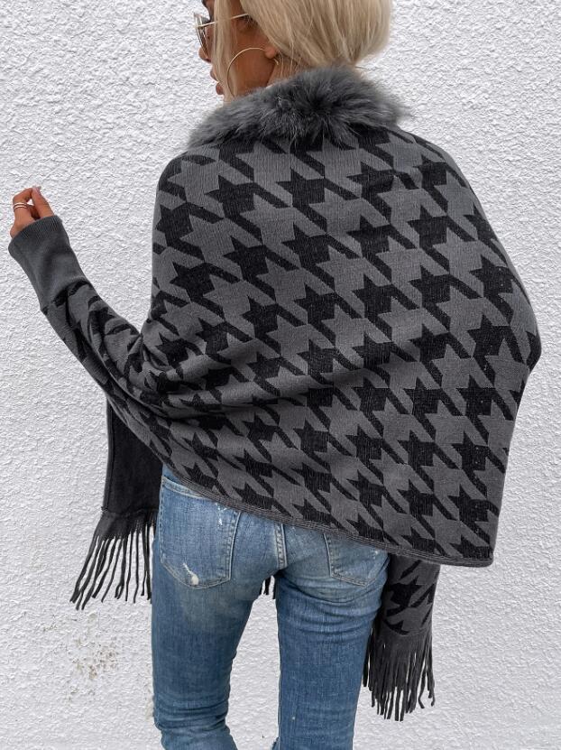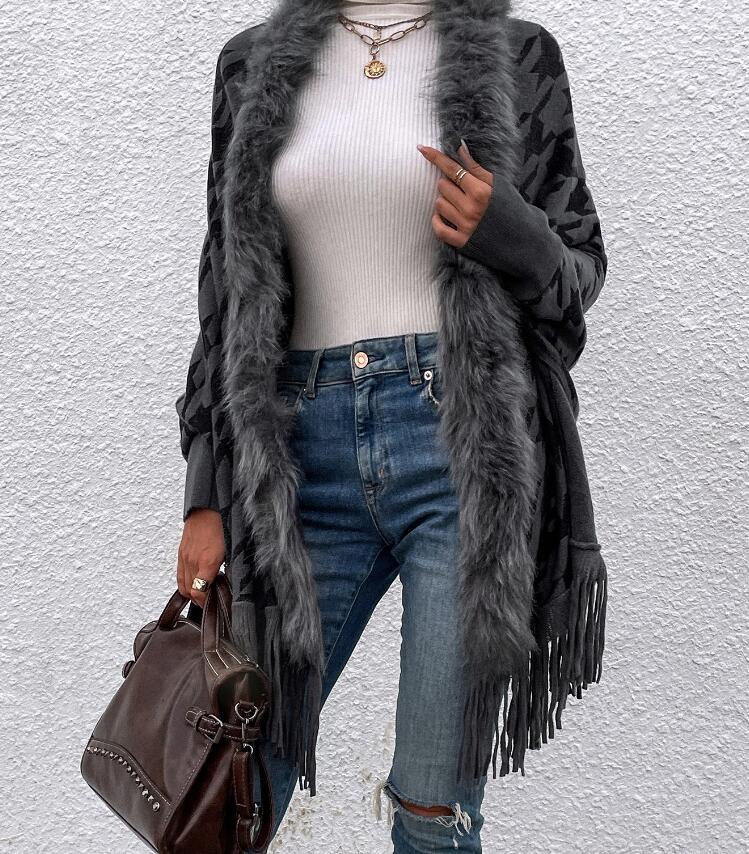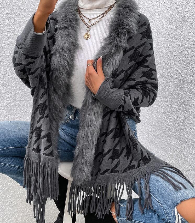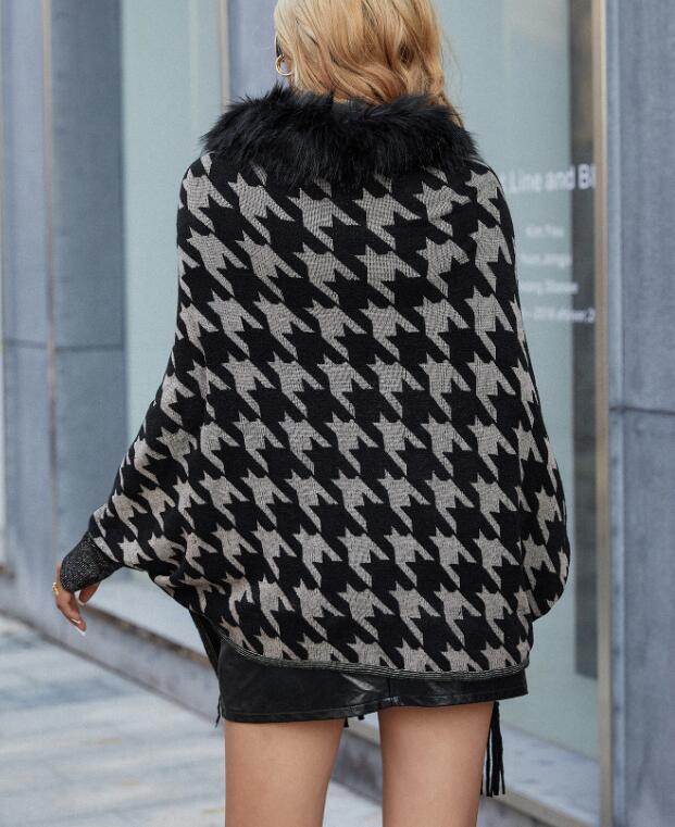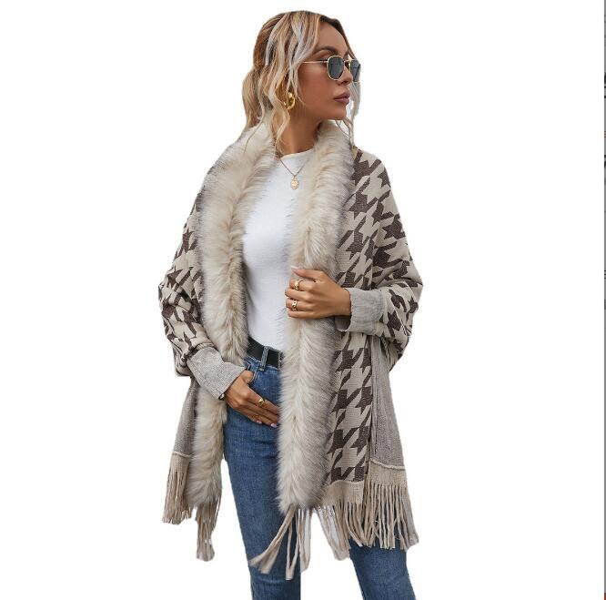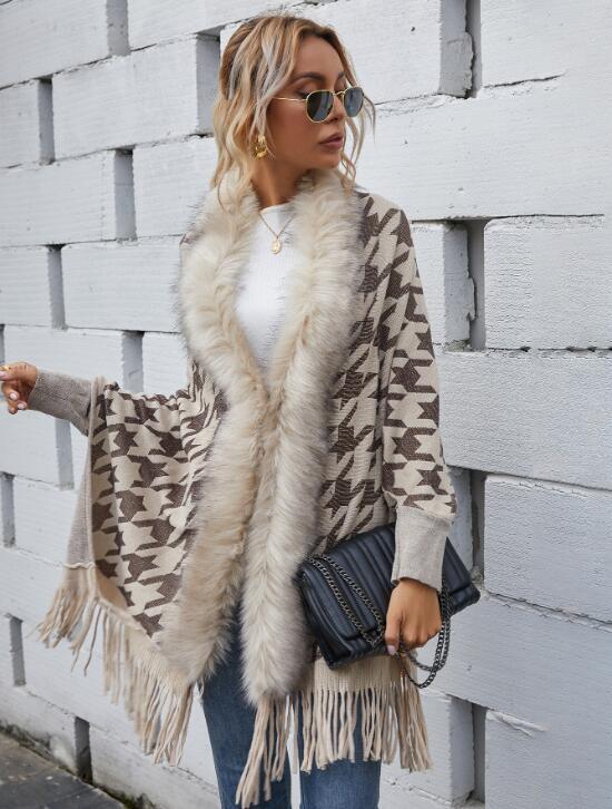 新入荷レディース カーディガン ニット セーター ファー付き 体型カバー きれいめ 優雅 チェック柄 通勤 普段着 秋冬