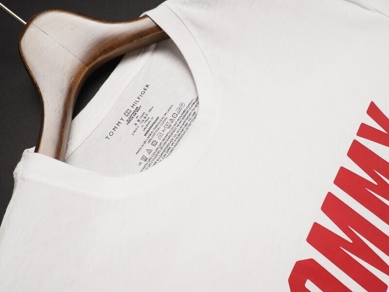 新品 TOMMY HILFIGER トミー ヒルフィガー ビッグロゴ クルーネック 半袖Tシャツ US:M JP:L 白 09T3874100