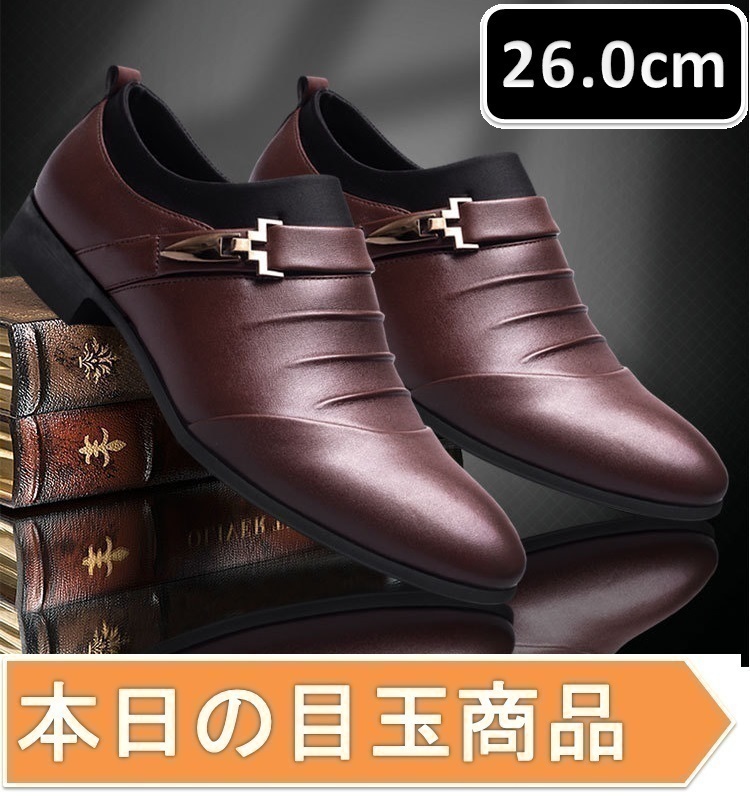 本日の目玉 ☆ メンズ ビジネス レザー シューズ ブラウン サイズ 26.0cm 革靴 靴 カジュアル 屈曲性 通勤 軽量 柔らかい 新品 【195】