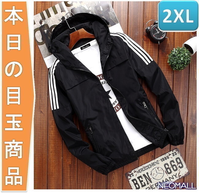 本日の目玉 【268】 ウィンドブレーカー フード付き ブラック 2XL メンズ ナイロン カモフラ 柄 アウトドア 防風 軽量 ジャケット