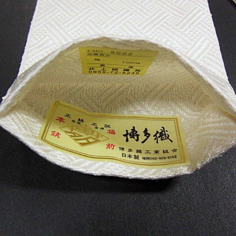 新品 正絹 本場筑前博多織角帯 です。品質は、正絹100%です。 幅約10,8㎝ 長さ約425cmほどです  こちらは一度締めると緩むことが無いといわれる本場筑前博多織の上質の締め心地で、 キュッキュッという絹鳴りの心地よい風合い、色合いの美しさで、 色柄共に何にでも合わせ良い高品質な角帯に仕上がっております。博多織は、絹鳴りが心地よく、締め心地のよさには定評があり、重宝して頂けるお品です。