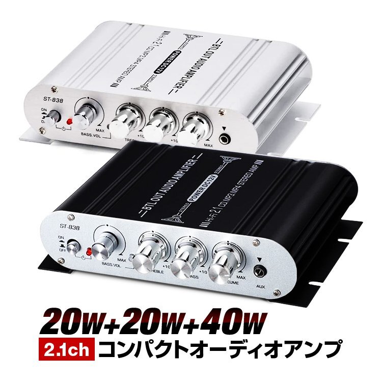 ◆LEPY製 2.1chコンパクトオーディオアンプ 出力20W+20W+40W サブウーファー対応 Hi-Fiステレオ 2.1chパワーデジタルアンプ 高放熱アルミボディ 小型汎用アンプ【ブラック】ST838