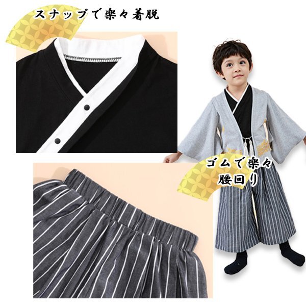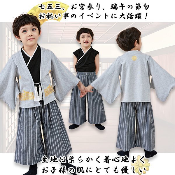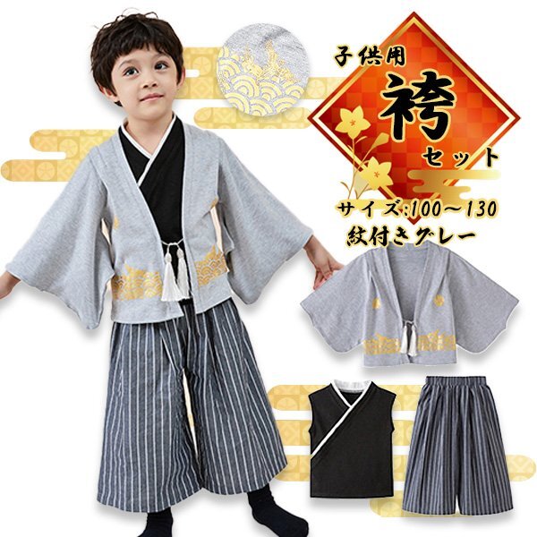 ☆子供用 袴 袴風 男の子 3点セット ※ご購入されましたらオーダーフォームに【サイズ】をご連絡ください。 カラーは紋付グレーになります。 【サイズ】 100cm 110cm 120cm 130cm ※サイズ表は目安であり、個人差がございます。予めご了承ください。 羽織+インナー+袴風ズボンの3点セット。 生地が柔らかく着心地がよくとても良く動きやすいので、元気な男の子にピッタリ! 端午の節句や七五三、冠婚葬祭など様々な場面で活躍します。 【商品名】 子供用 袴 袴風 男の子 3点 セット 【サイズ】 100cm 110cm 120cm 130cm 【カラー】 ・紋付グレー 【素材】 本体:綿100% サテン部分:ポリエステル100% ( セットアップ 袴風 子供服 男児 紋付袴 黒紋付羽織 男の子 フォーマル 子供服 衣装 節句 紋付 和風 和服 ベビー用品 コスプレ かっこいい ) |