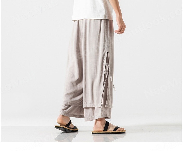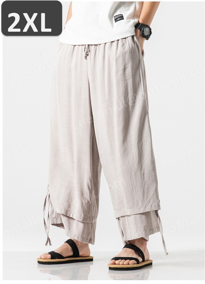 お買い得☆メンズ ワイドパンツ グレー 2XL カジュアル ロングパンツ スウェット 無地 ポケット付 オールシーズン【066】