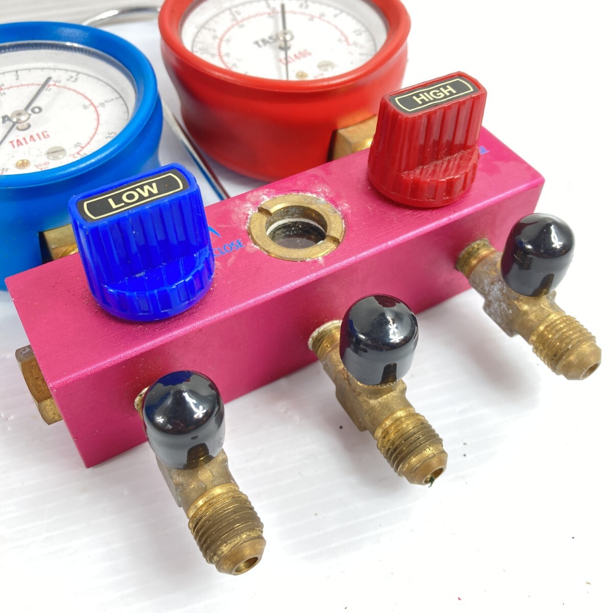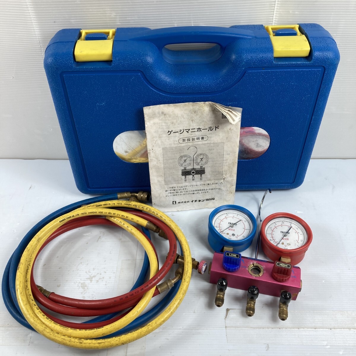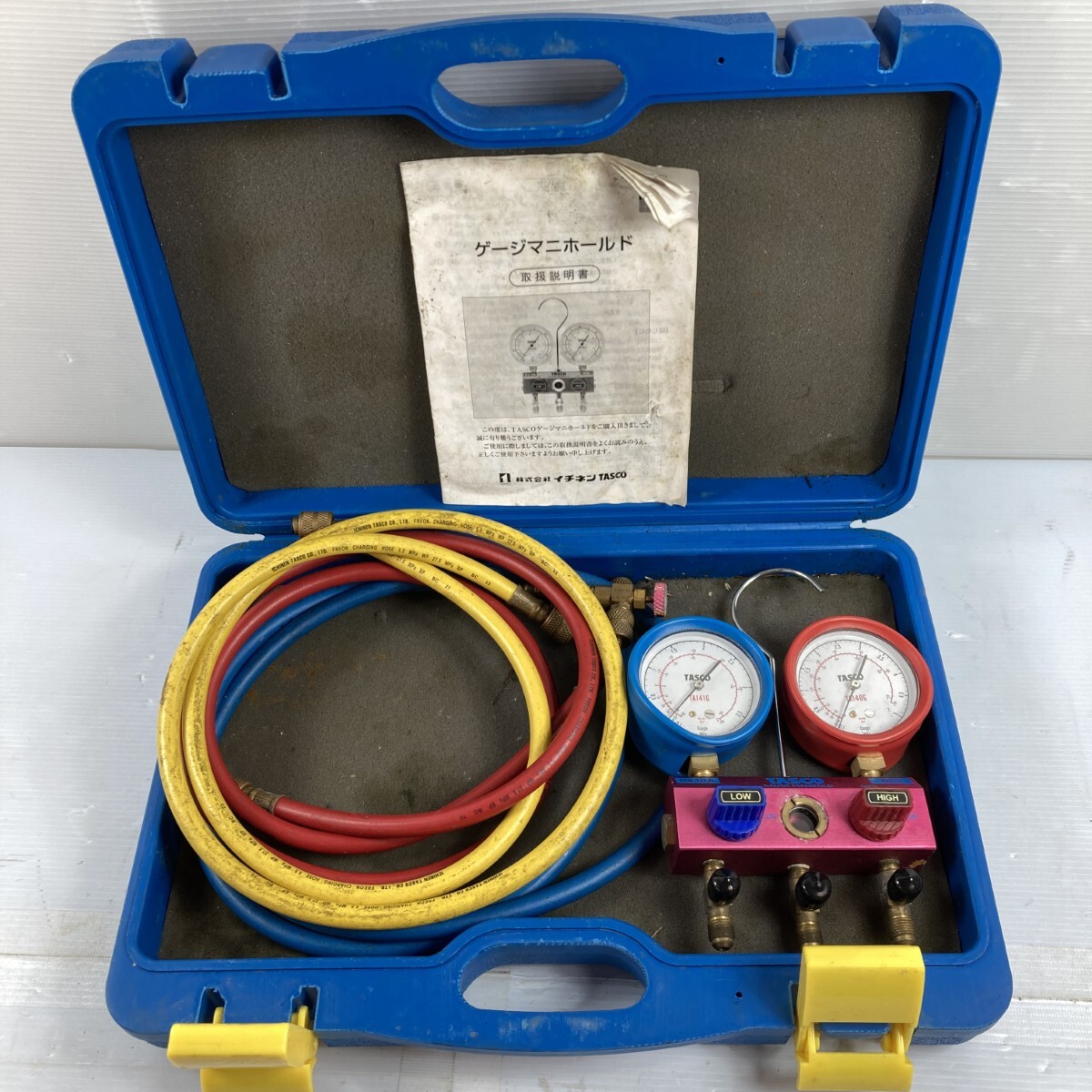 【商品名】1円スタート 中古 イチネンTASCO ジャンク ゲージマニホールド ケース付 動作未確認 レッド×ブルー 全体的に状態が悪い