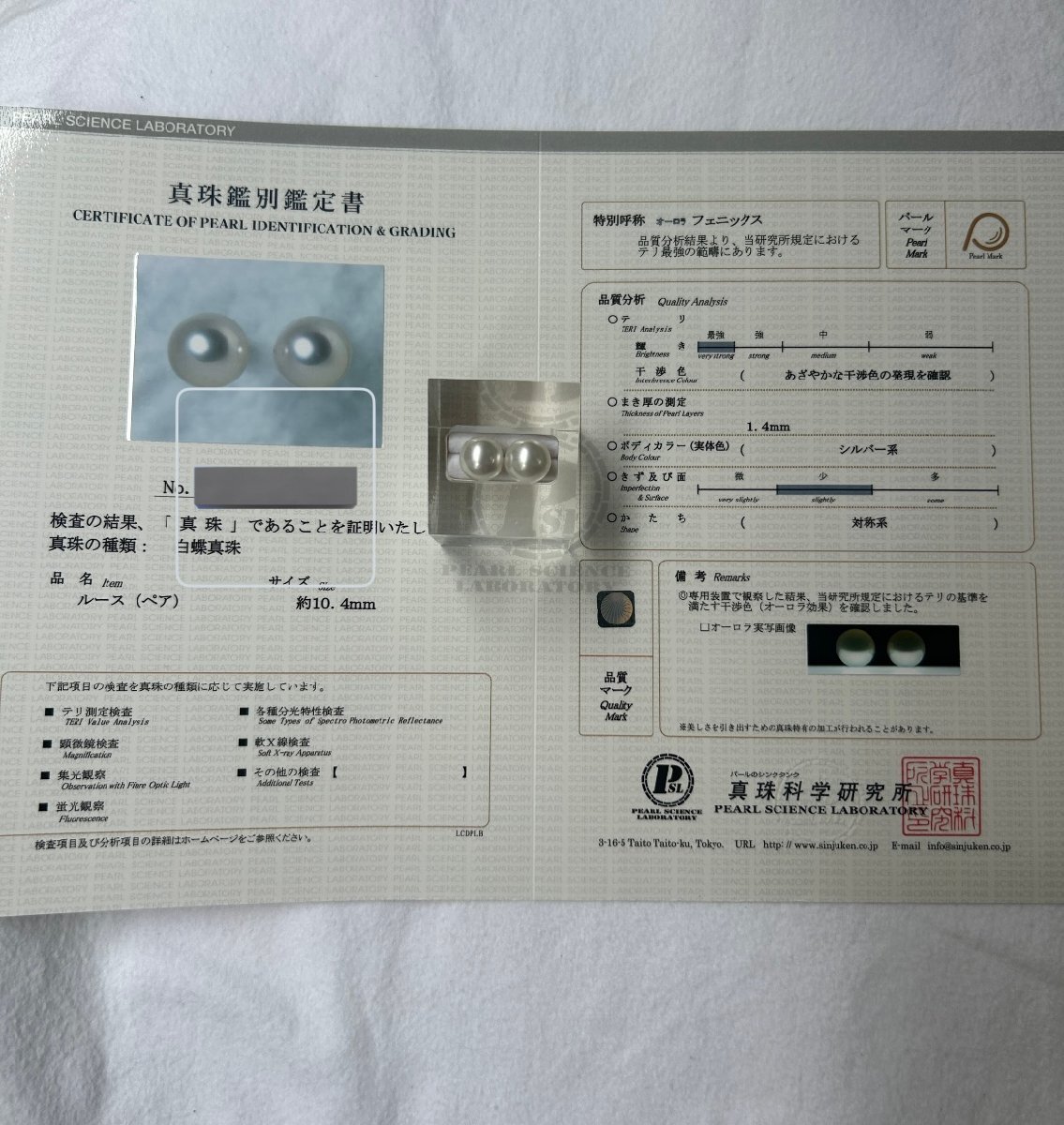 | 付属品 | 真珠科学研究所鑑別書付 ケース |