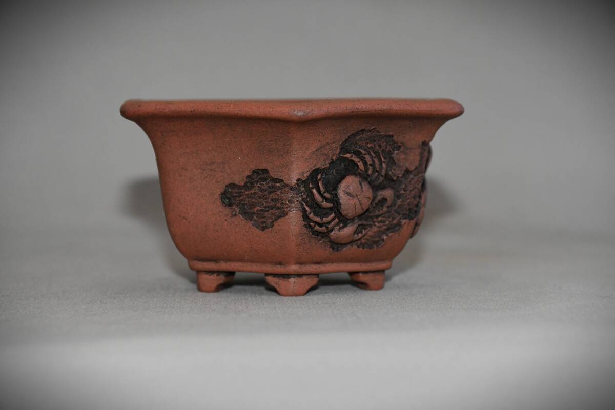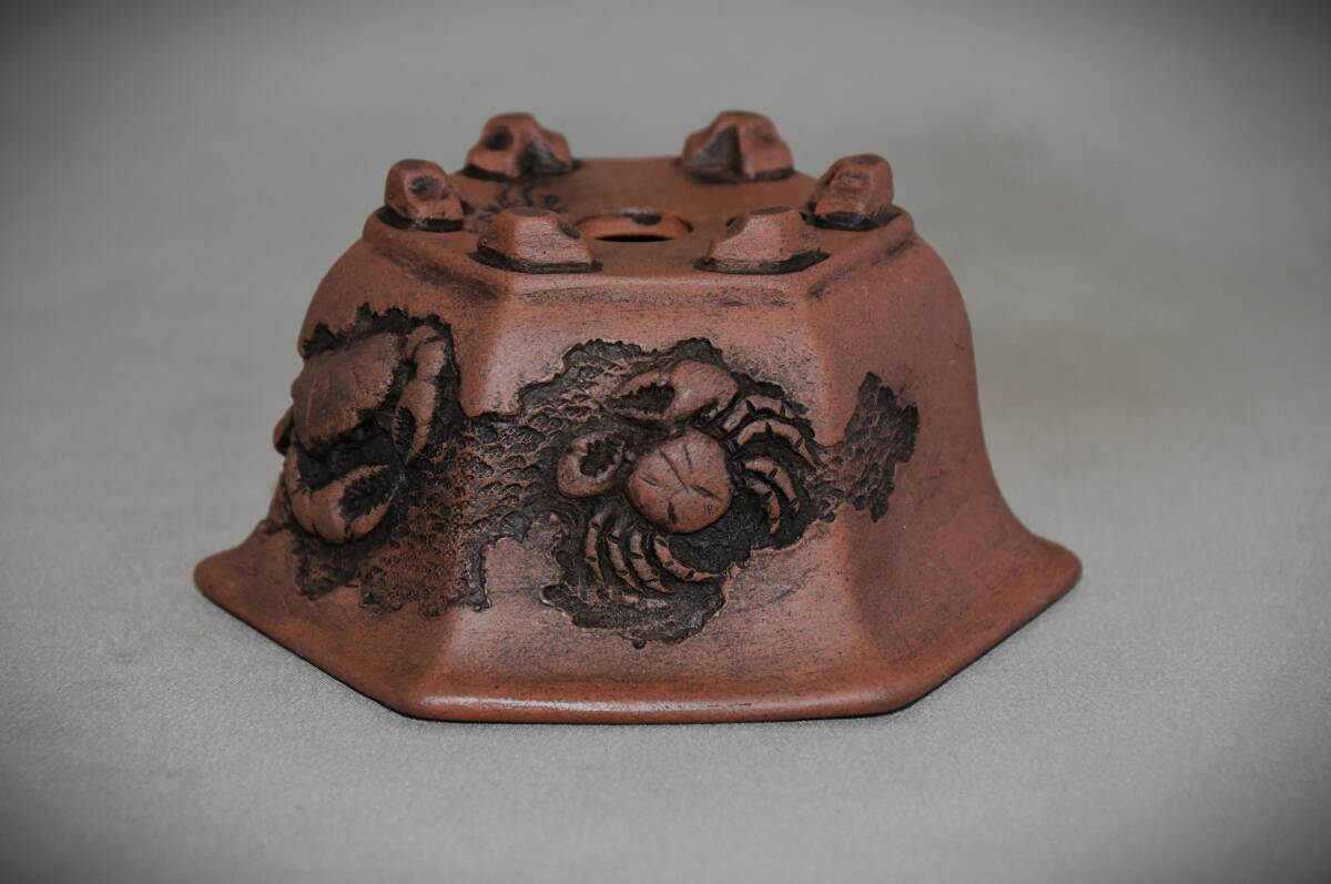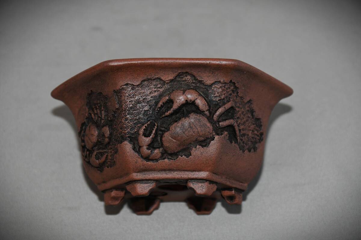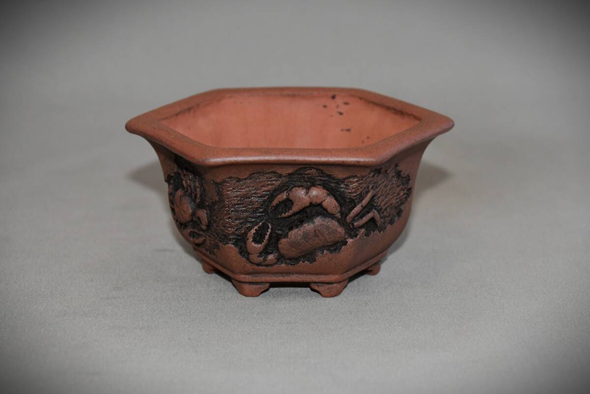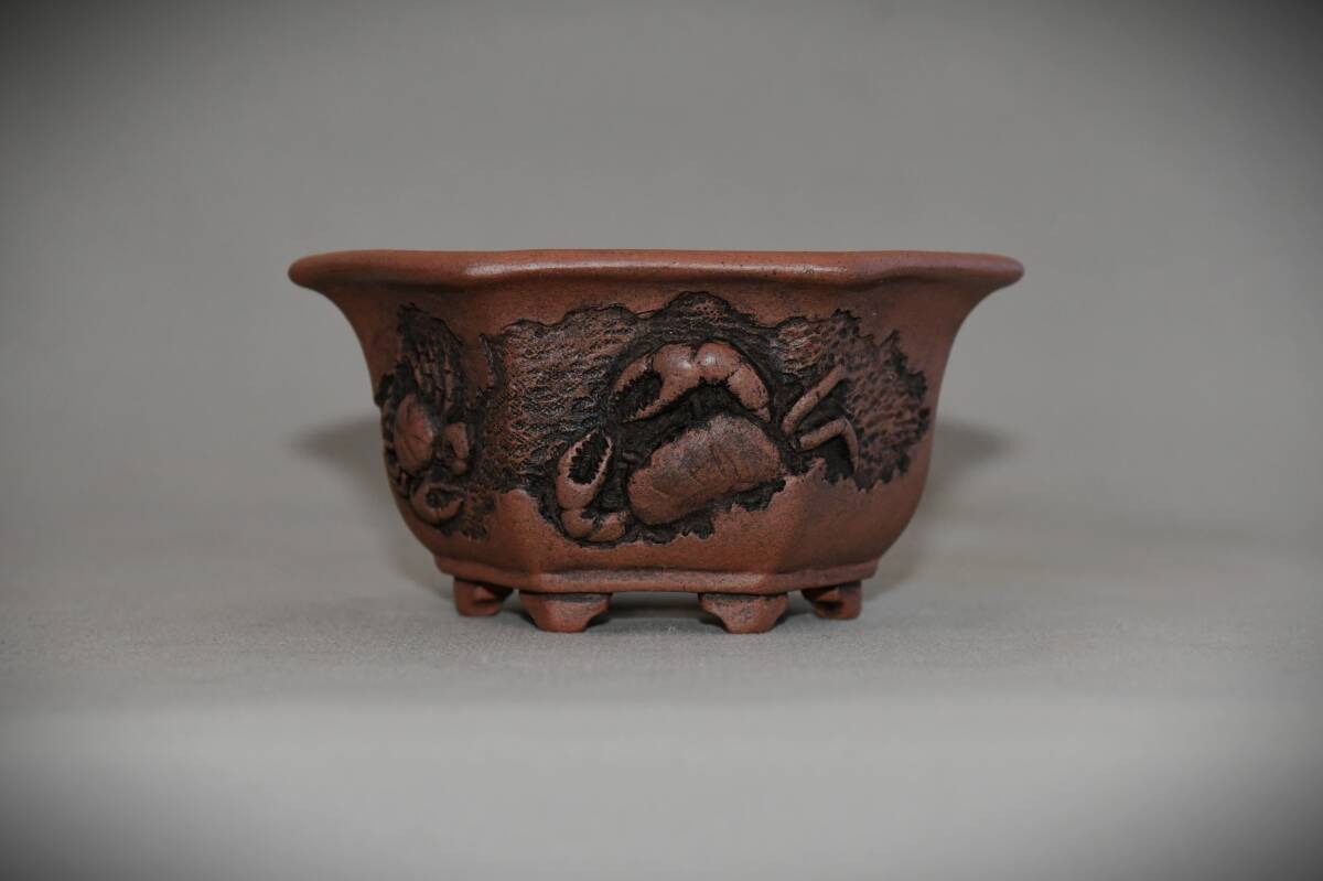 | ☆盆栽小鉢【沢蟹浮彫段足六角】雨宮忍作 巾11cm |