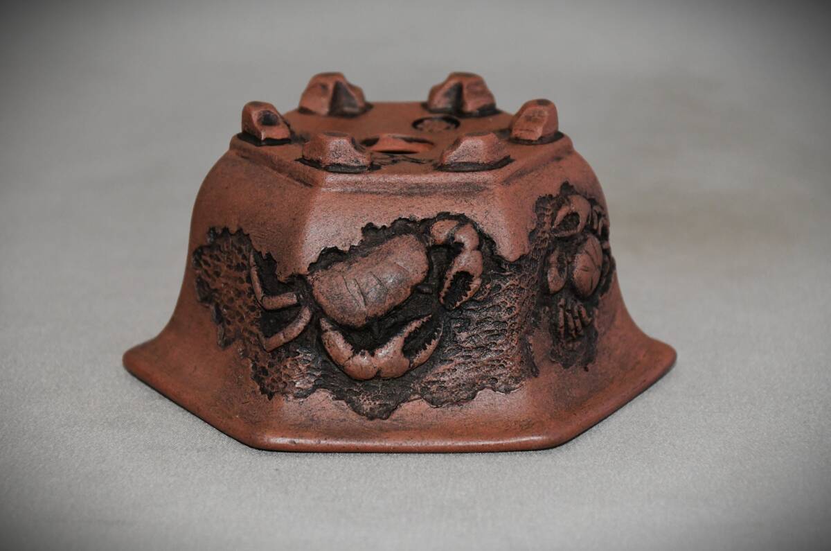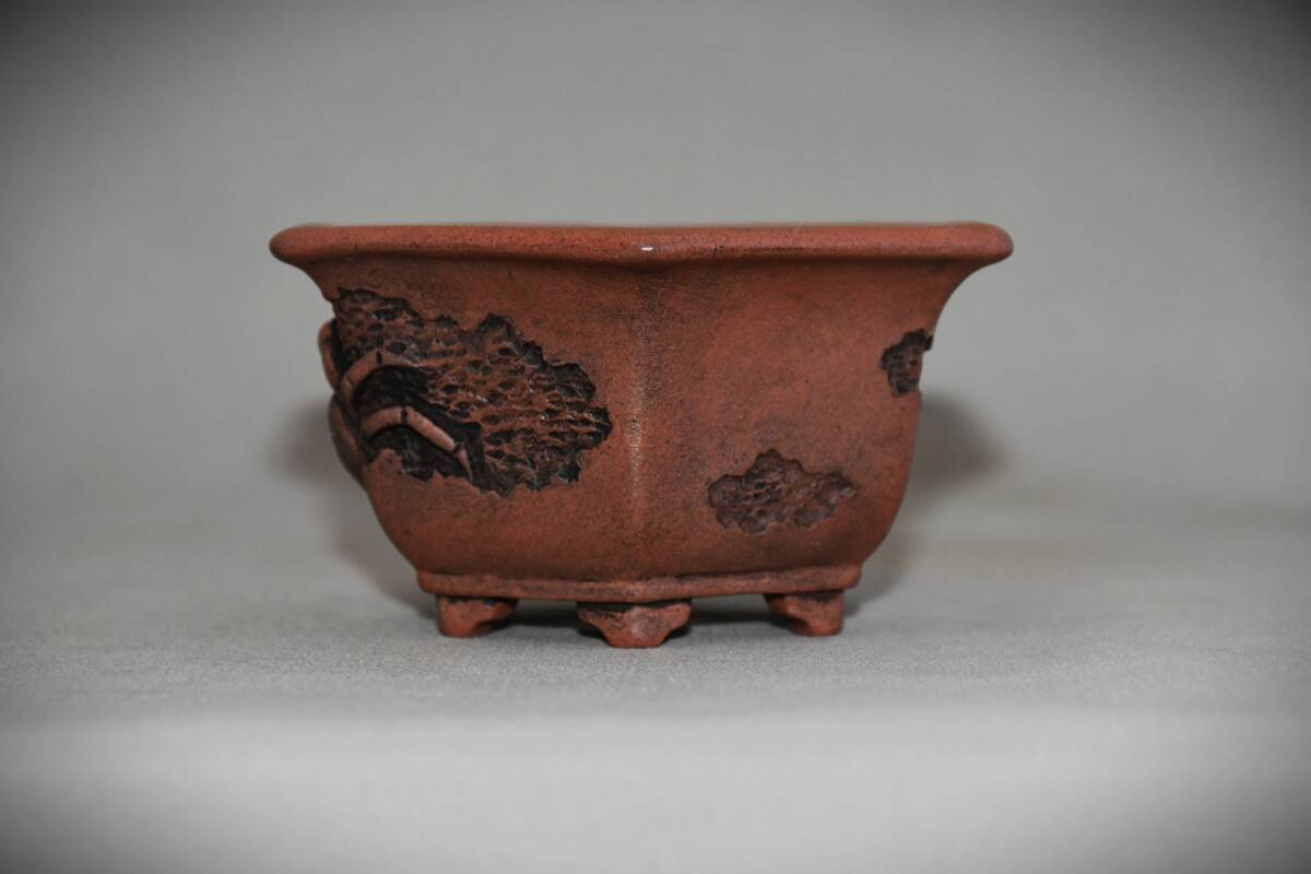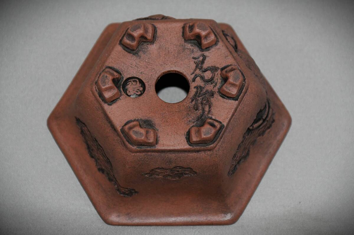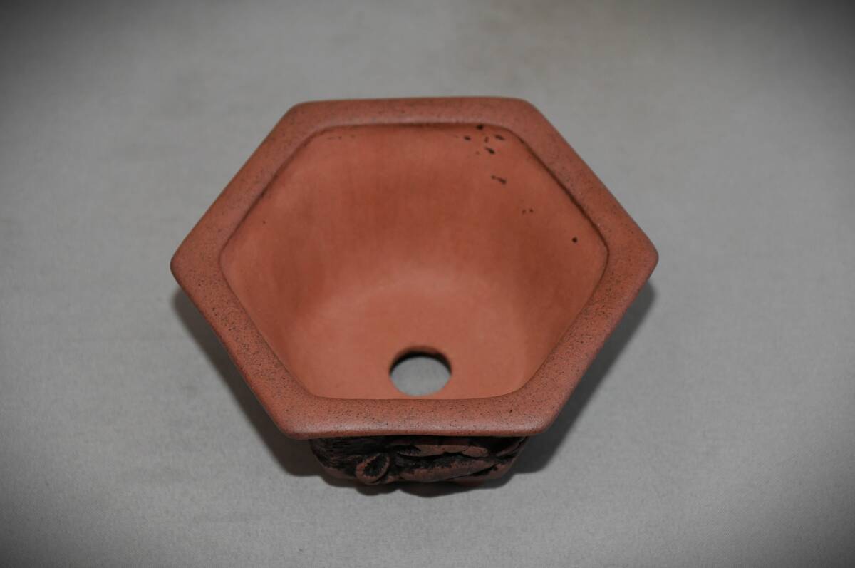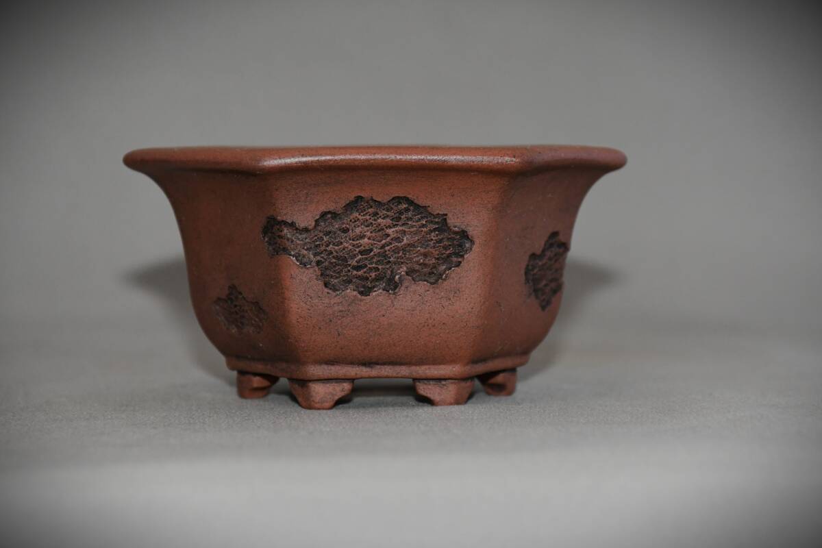 | ☆盆栽小鉢【沢蟹浮彫段足六角】雨宮忍作 巾11cm |