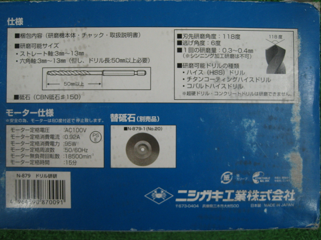| TMO 9-K-333 ニシガキ ドリル研磨機(N-879) |