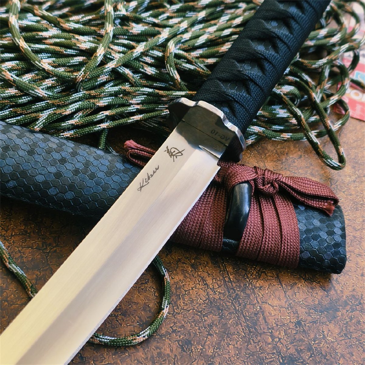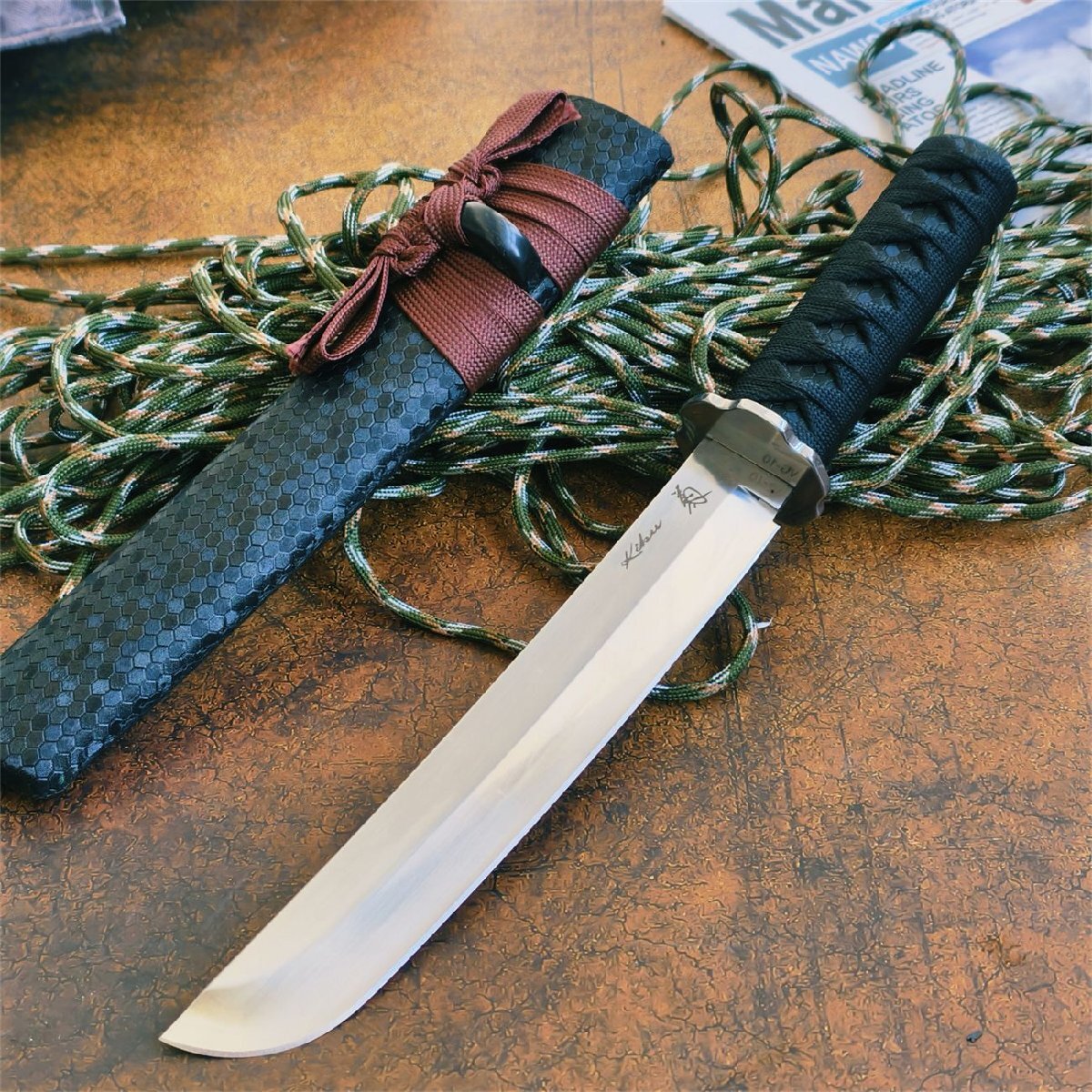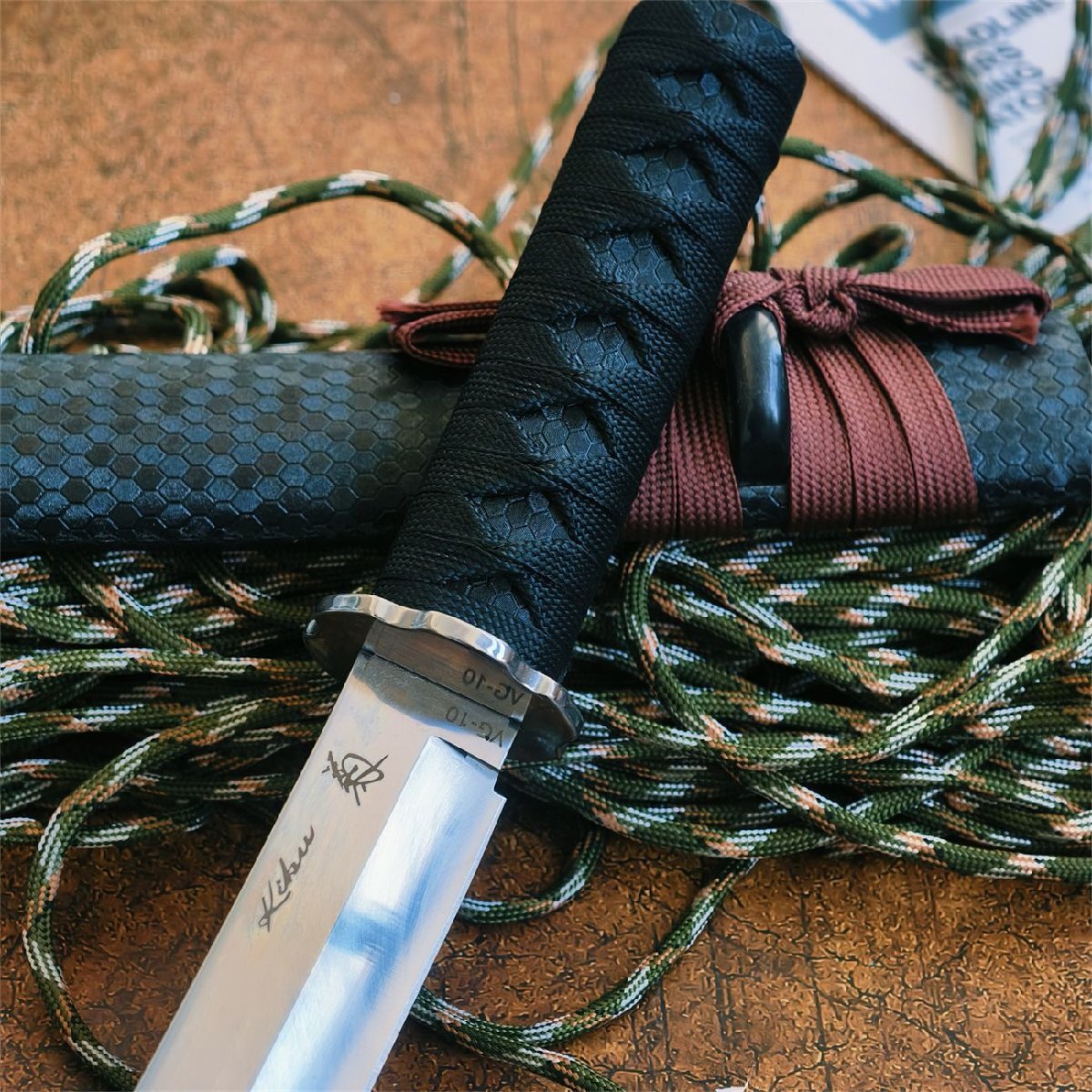 VG10全長 350mm 大型サバイバルナイフ アウトドアナイフ 薪割り 鋼製 シース付き ハンティング