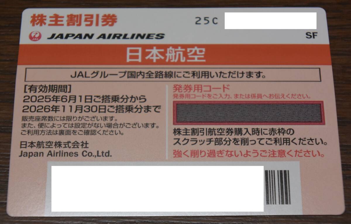 JAL国内線株主割引(2025年6月1日~2026年11月30日搭乗分まで有効2枚)