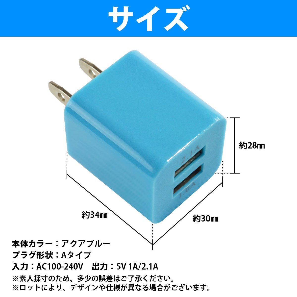 スマートフォン 充電器 ACアダプター USBポート 2口 2.1A 水色 iphone スマホ 充電 USB2ポート コンセント コネクター