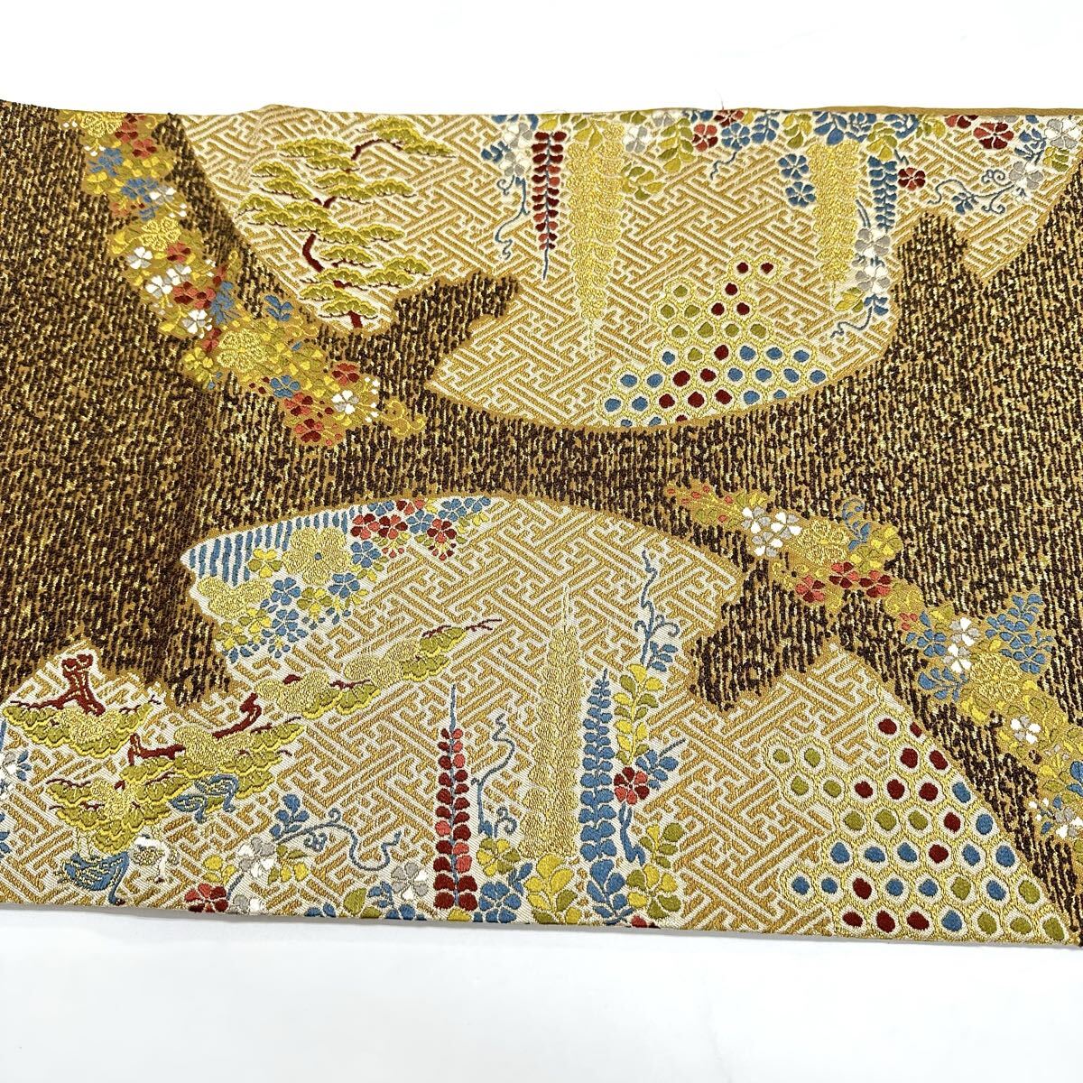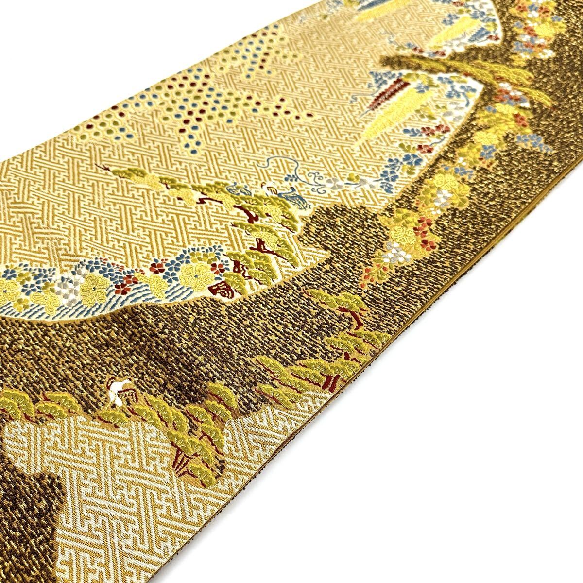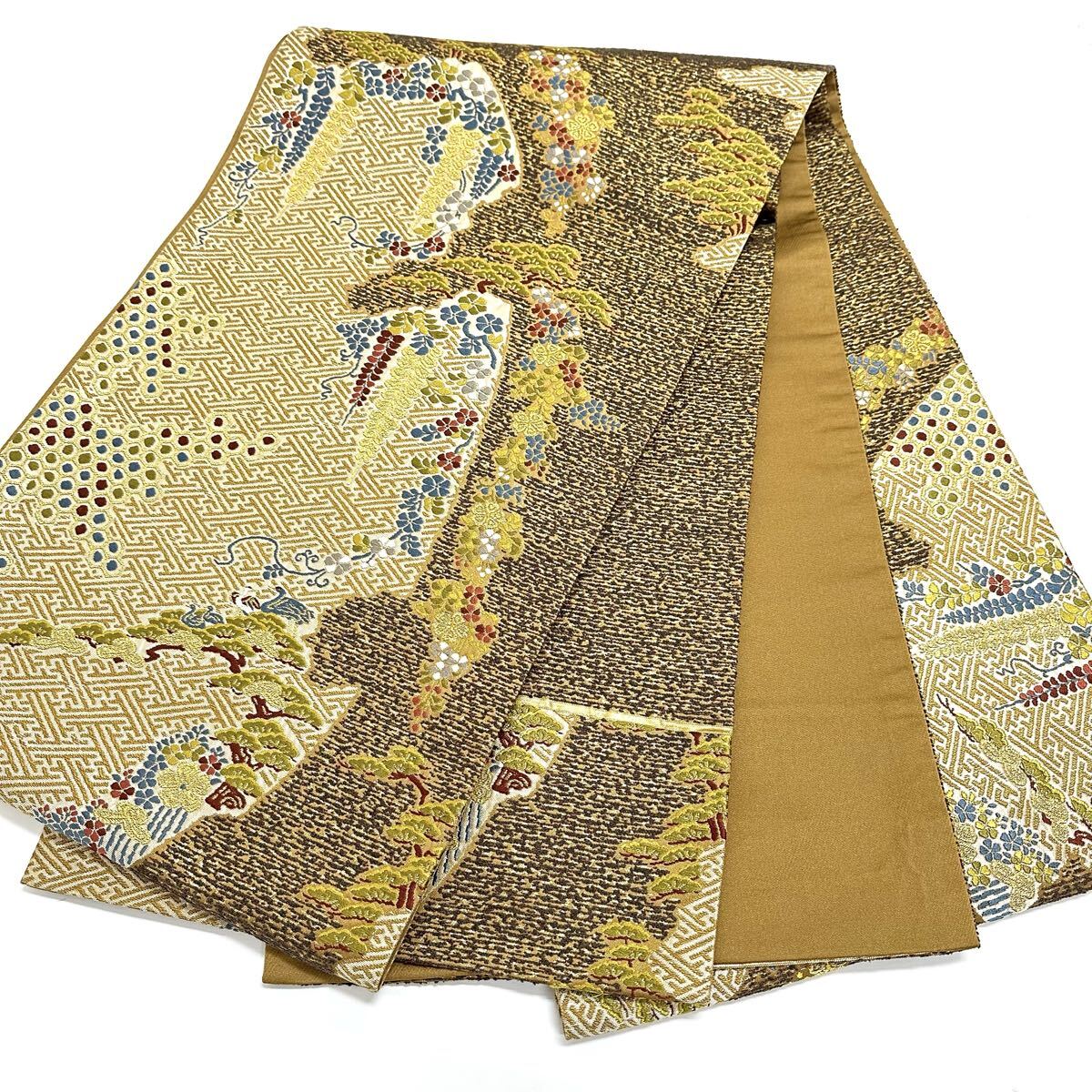 【七福】c968 逸品 高級品 正絹 袋帯 六通 太鼓柄 金色 金糸 刺繍 豪華