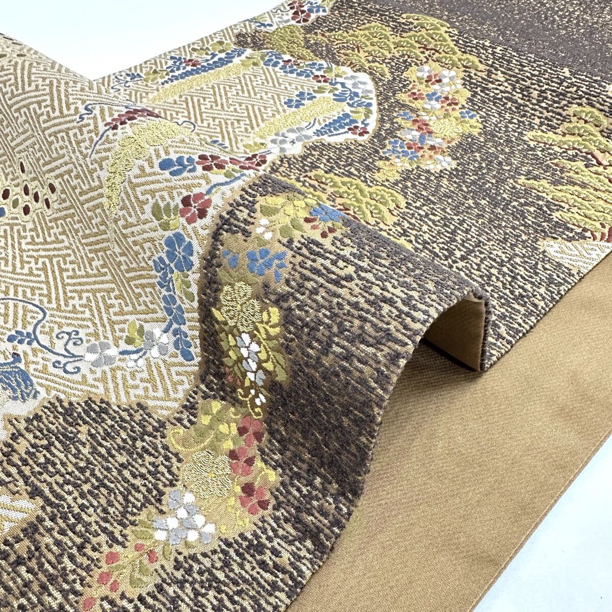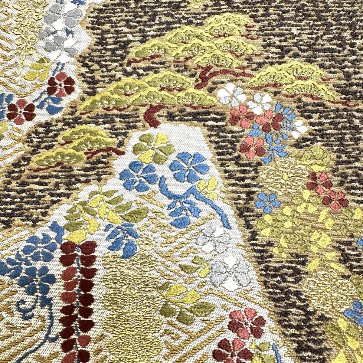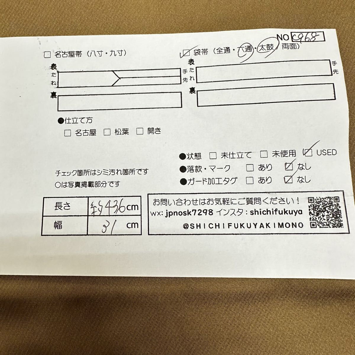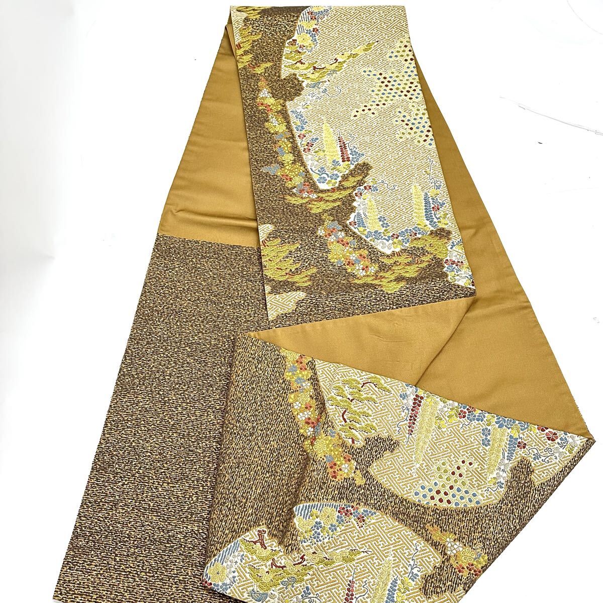 【七福】c968 逸品 高級品 正絹 袋帯 六通 太鼓柄 金色 金糸 刺繍 豪華