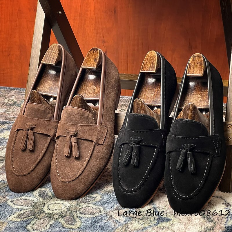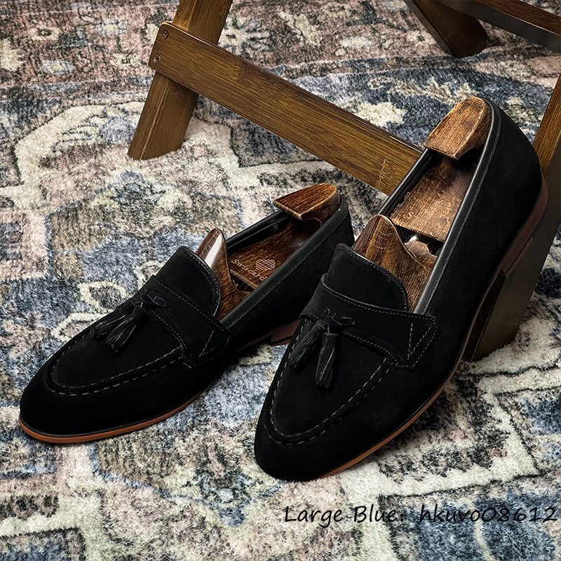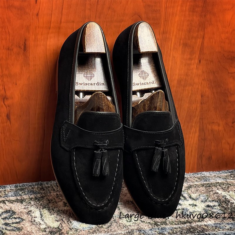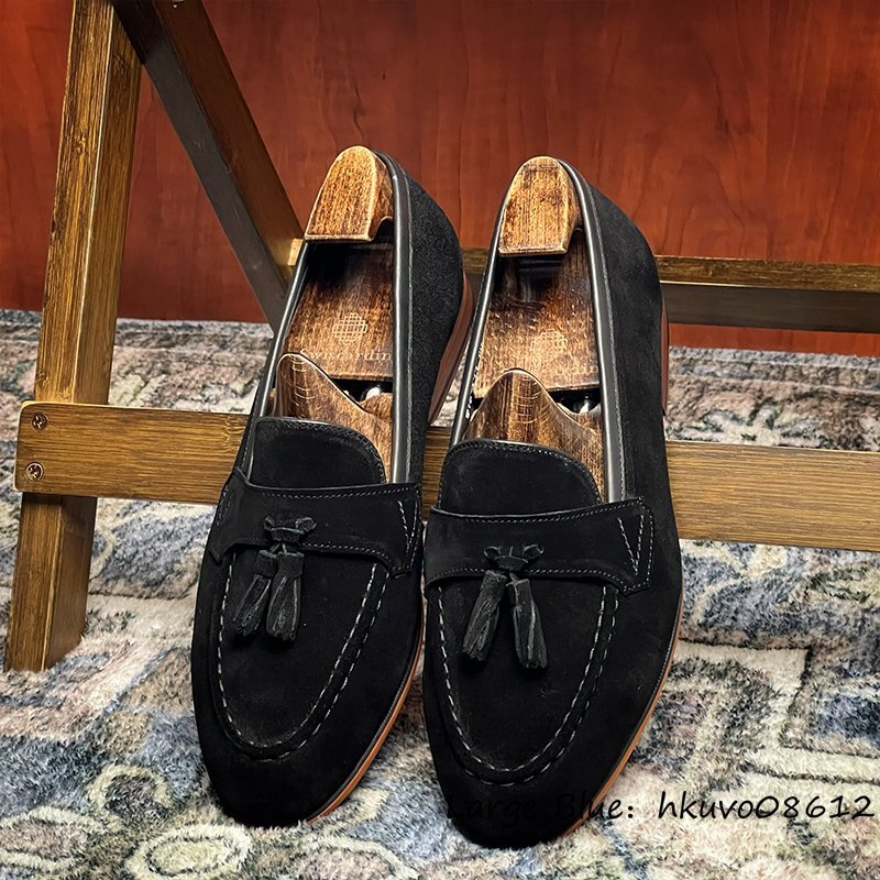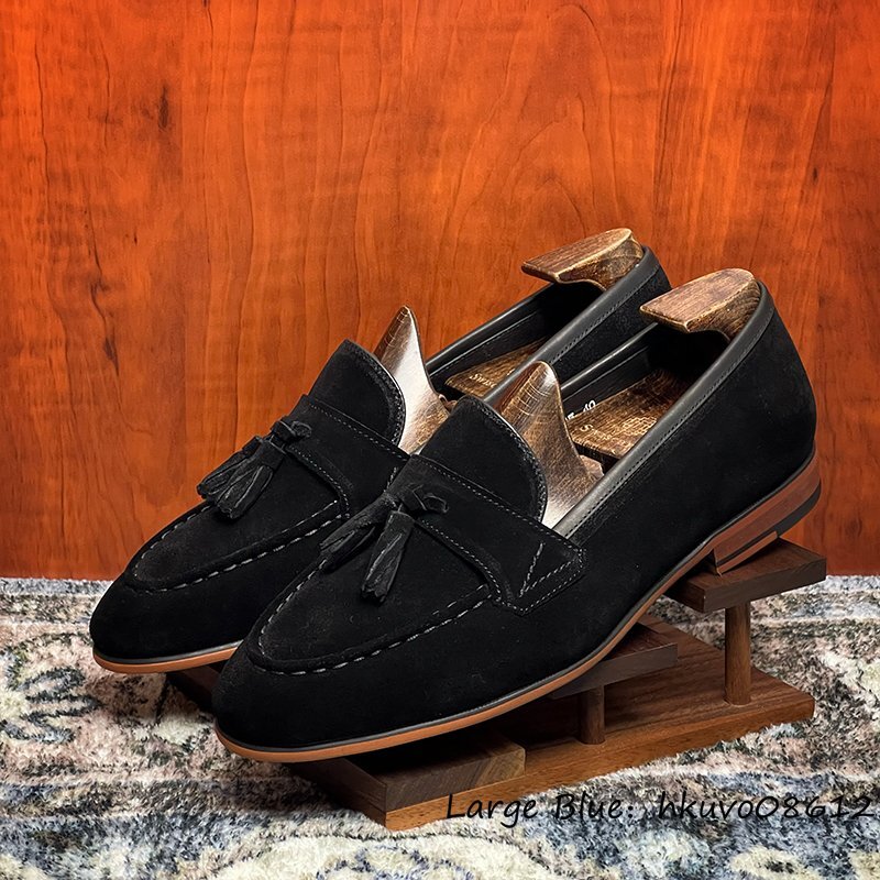 入手困難■スエード革 メンズ レザーシューズ 本革 職人手作り ローファー ビジネスシューズ 高級牛革 革靴 紳士靴 通勤 ブラック 27.5cm