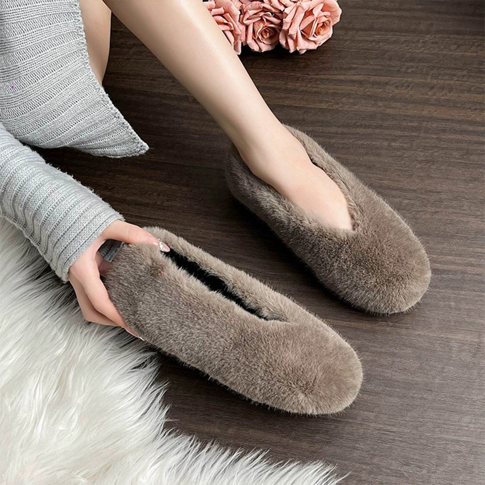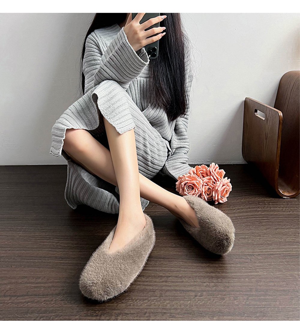 ファーパンプス パンプス レディース 靴 ぺたんこ フラット フラットシューズ ローヒール ラウンドトゥ グレー /23cm hw1384.1.23cm