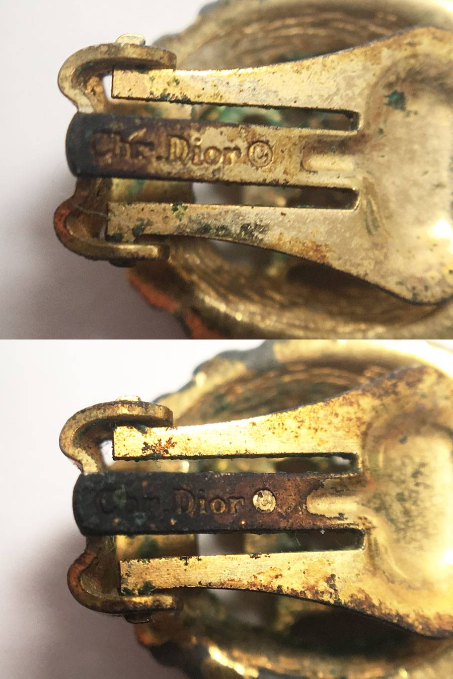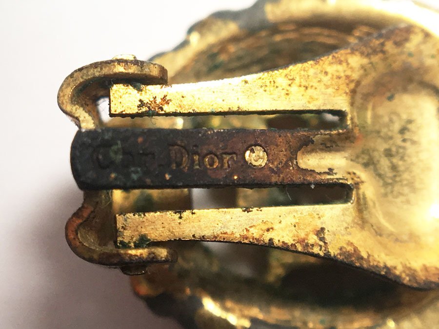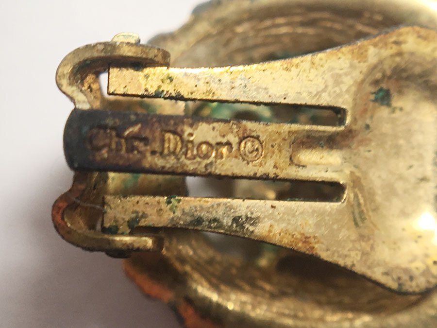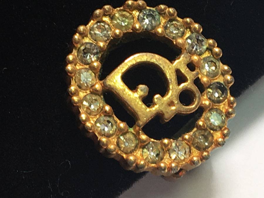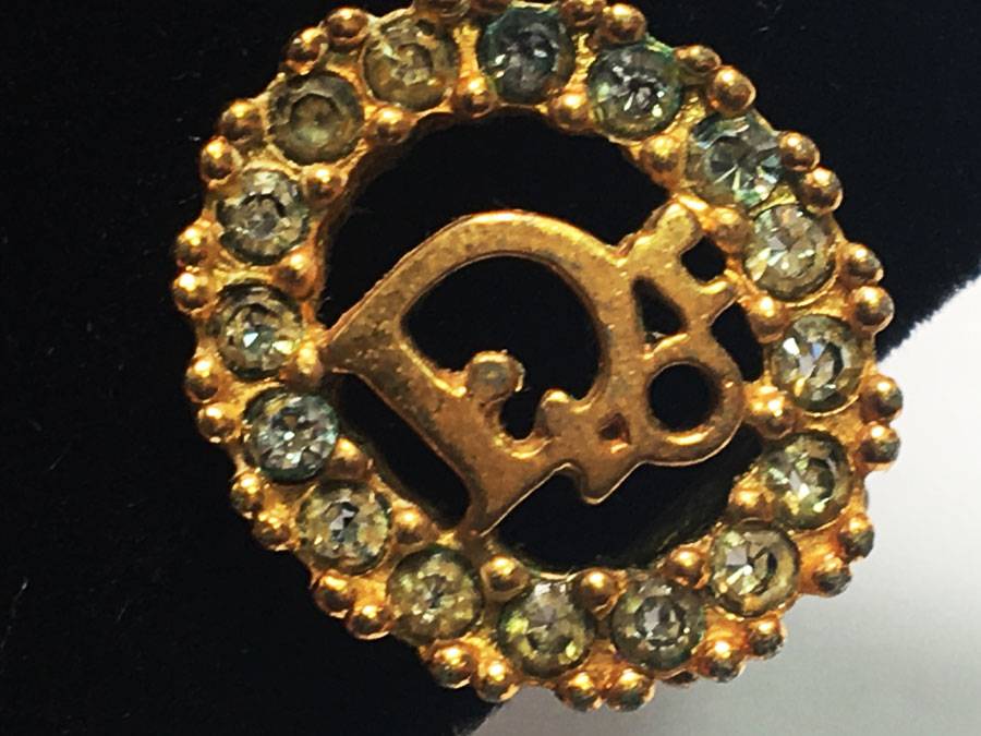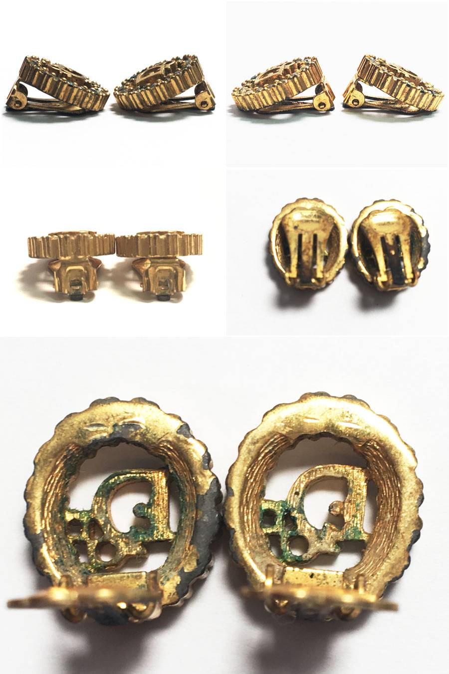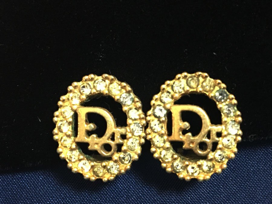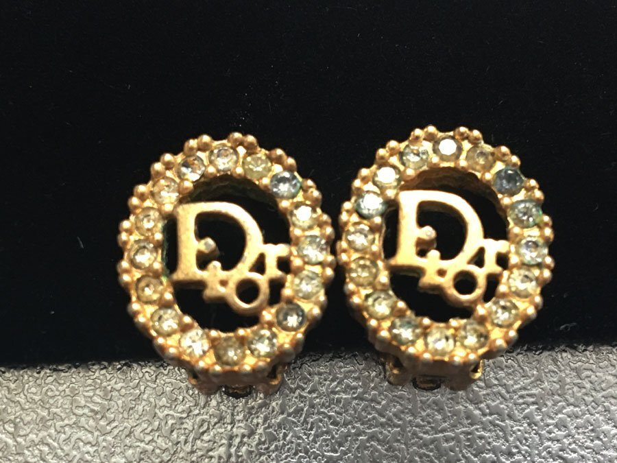 Christian Dior クリスチャンディオール イヤリング ロゴ ラインストーン ゴールドカラー イヤークリップ ヴィンテージ