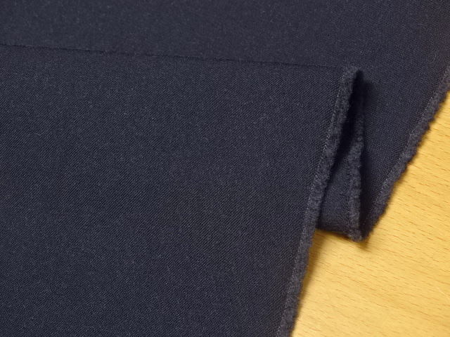 ●○ウールポリPU ツイルストレッチ やや薄 ソフト 濃紺系 10mW巾○●
