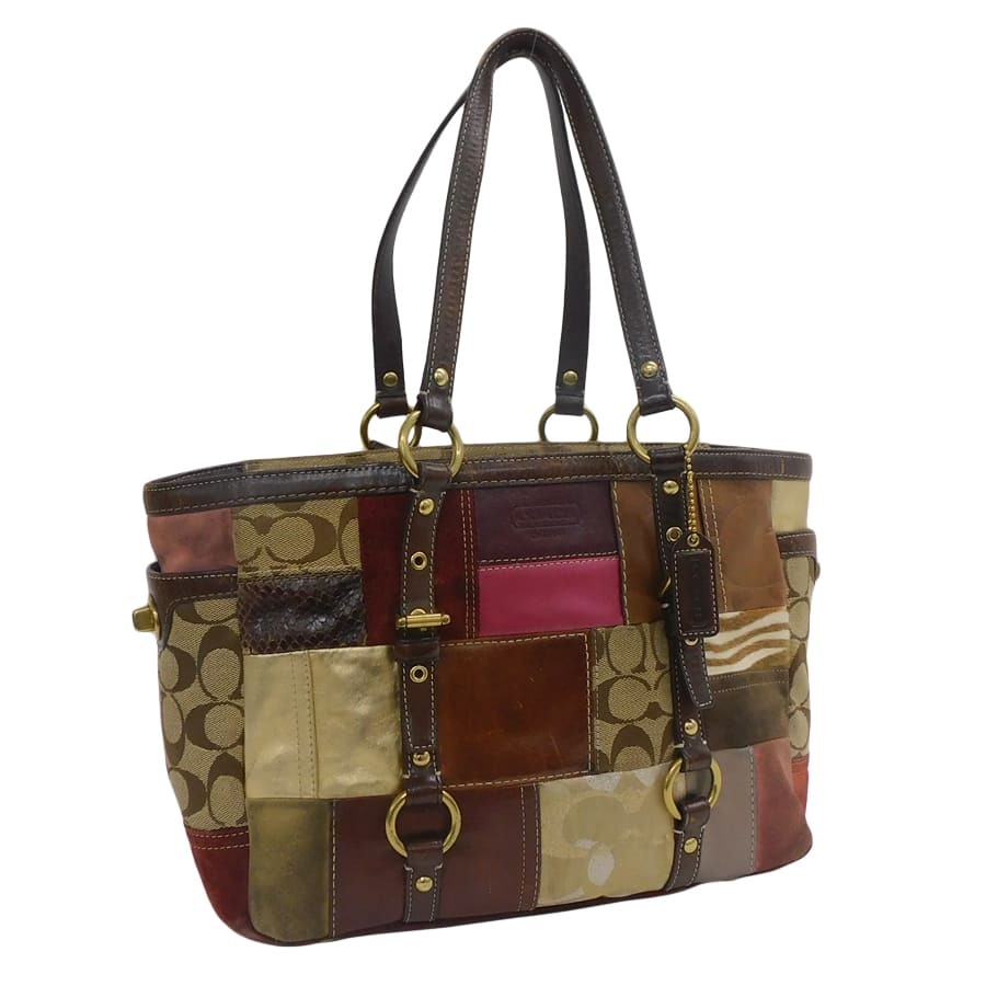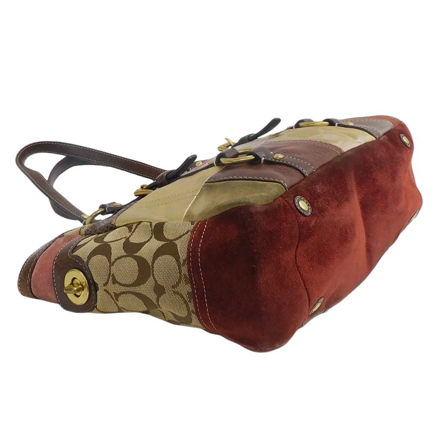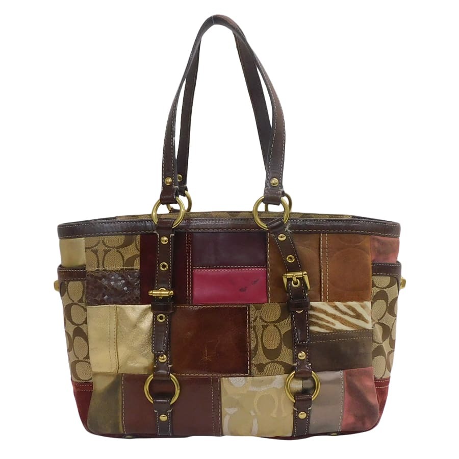 1円■コーチ/ハンドバッグ/10437/パッチワーク/マルチカラー/キャンバス×スエード/レディース/COACH■E.Bmm.pS-17日[中古]