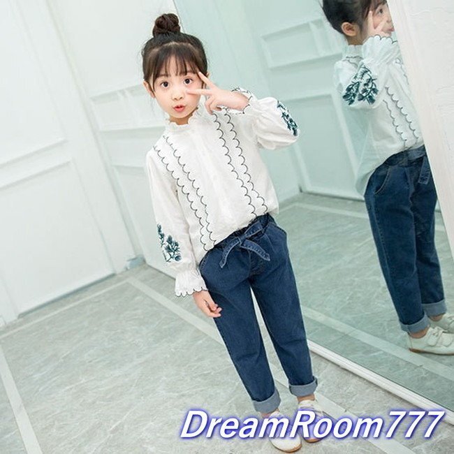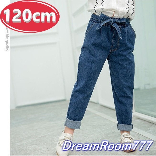 【120cm】ロールアップ ハイウエスト デニムパンツ 子供服 女の子 男の子 ボーイズデニム 韓国子供服