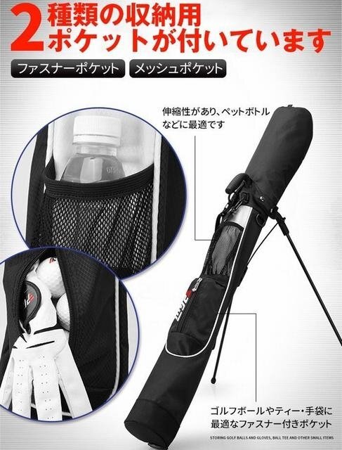 クラブケース スタンド 背負える ゴルフ ショルダーベルト フード付き キャディバッグ セルフスタンド ゴルフバッグ 軽量 撥水加工 ブルー